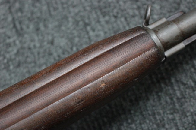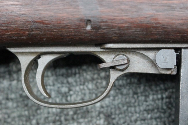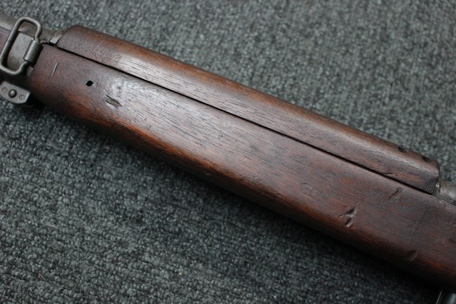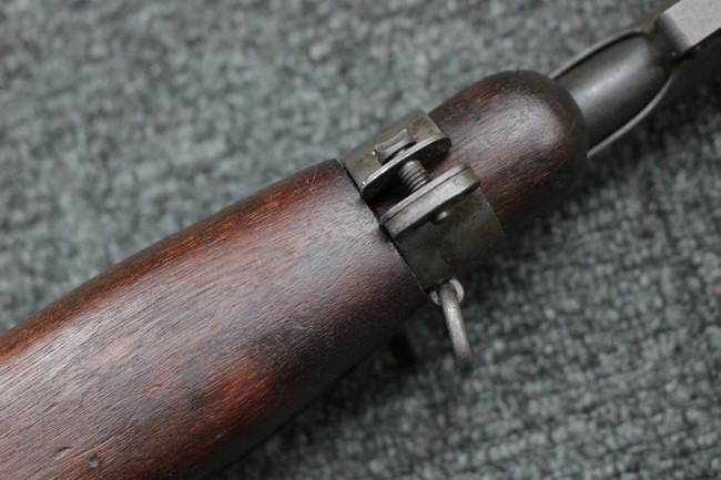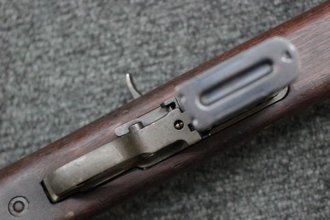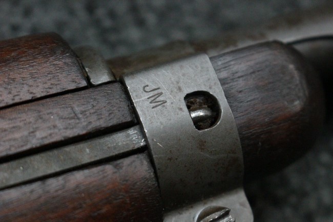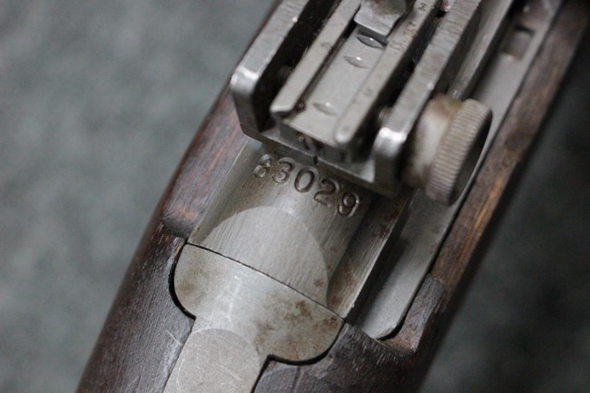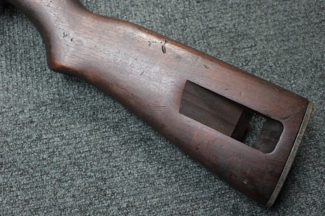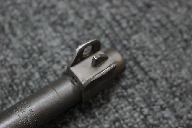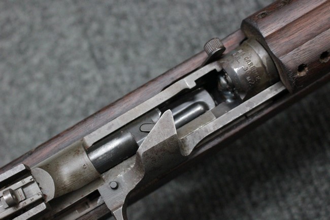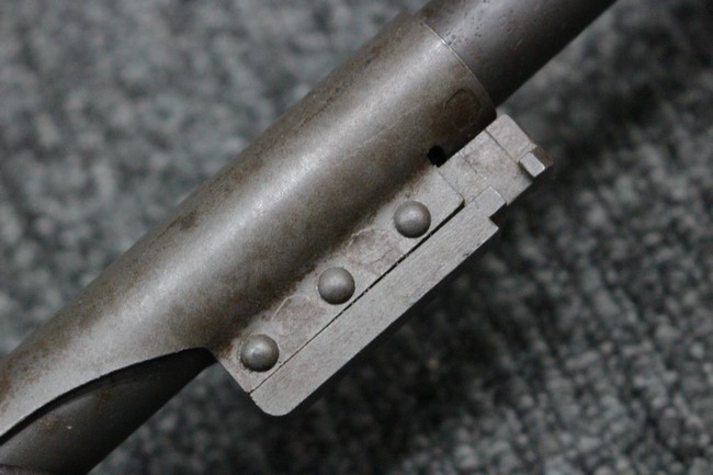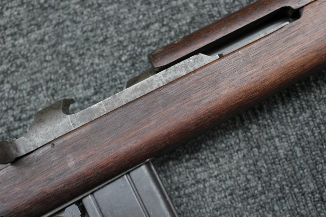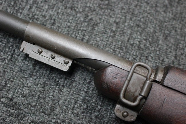 本品はインランド社で製造された個体で、レシーバー後端にシリアルNo.及びメーカーを示す刻印が見られます。 インランド社は第二次世界大戦中にM1カービンを最も多く製造していたメーカーとしても知られています。 シリアルNo.から1942年5月から1943年11月の間に製造された個体である事が判ります。 また、銃身先端付近には「INLAND MFG. DIV. GENERAL MOTORS 11-42」の刻印も入っています。 薬室上のモデル名刻印は「U.S. CARBINE CAL. 30 M2」となっており、M1からの打ち直しとなっています。