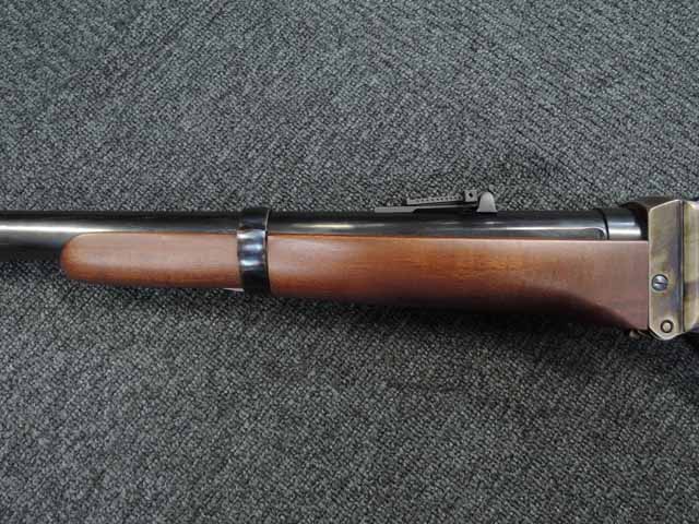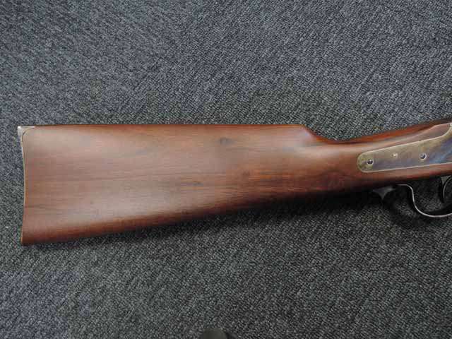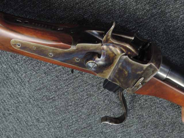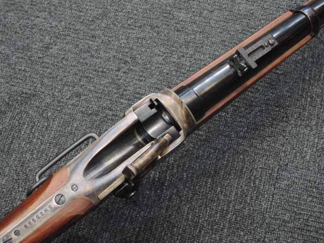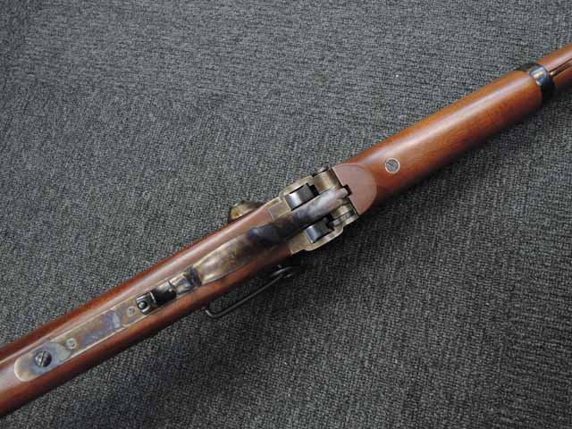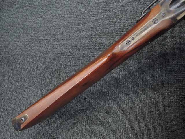 金属部は銃身部やトリガー、フォーリング・ブロックやその他小パーツなどは大変美しいブルーイング処理で仕上げられており、さらに機関部周りとバットプレートにはケースハードゥン処理が施されて、全体的に大変美しい品となっております。