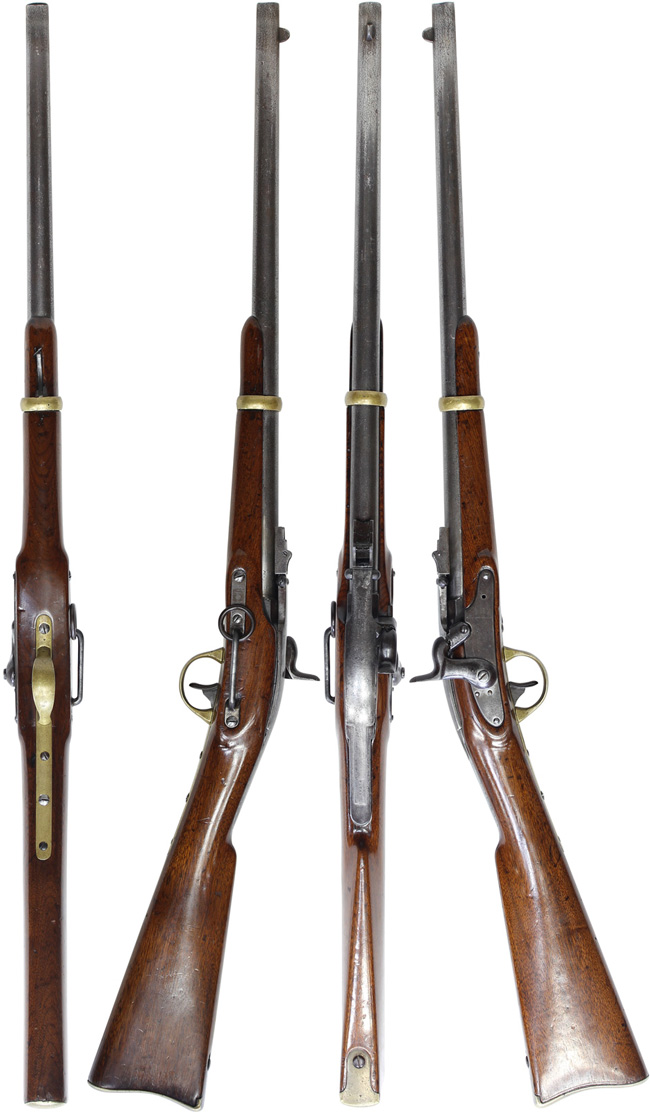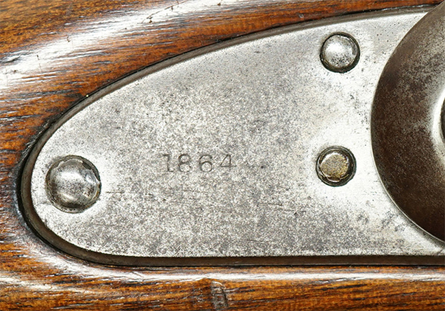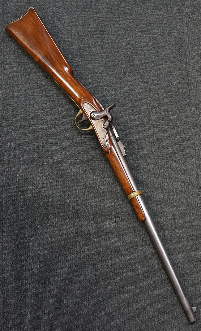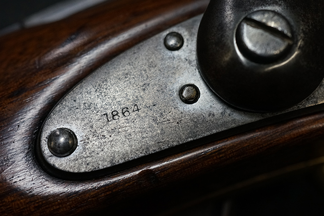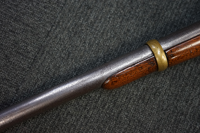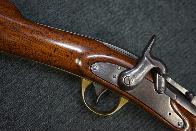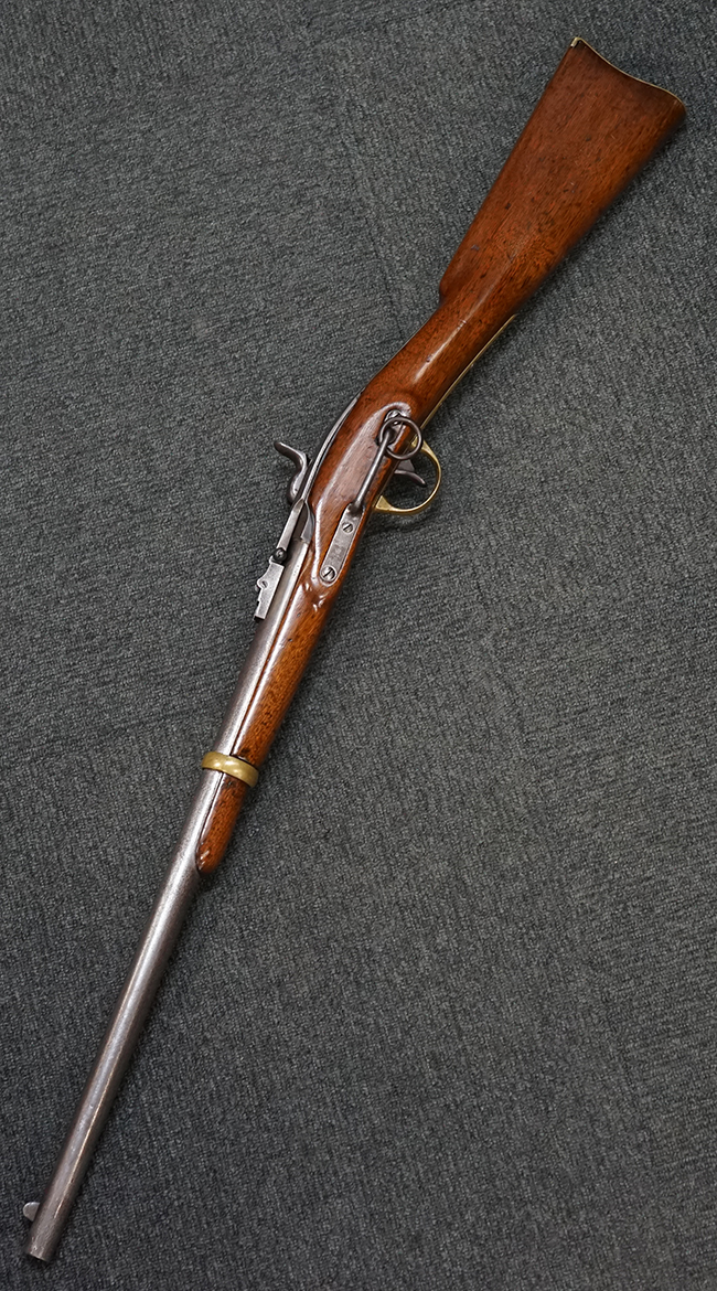 本品は160年以上前に生産された古式銃としてはとても良い状態の品で、特にウォルナット製の木部は南北戦争当時のオリジナル仕上げが完全に残った非常に美しい品です。 銃身及び他の鉄部はオリジナルの仕上げは落ちているものの、古式銃独特の時代錆が良い感じでついており美しいストックとマッチしています。 真鍮製のバレル・バンド、トリガー・ガード、バット・プレートは近年の手が加えてられない良い黄金色に時代が着いたものです。