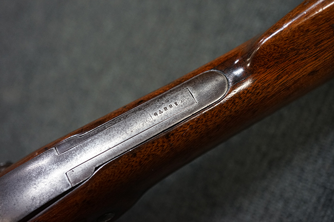 バットストック右側面に真鍮製のパッチ・ボックスが付いて、ブリーチ・レバーにサイドにチェッカーリングの入った三角形に 近い板状のラッチが付いた初期型(1st モデル)と、本と同じパッチ・ボックスが無く丸いボタン型(チェッカーリングは入っていない)は後期型(2nd モデル) と呼ばれています。 (MM)