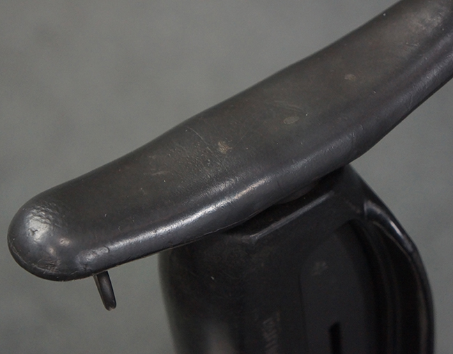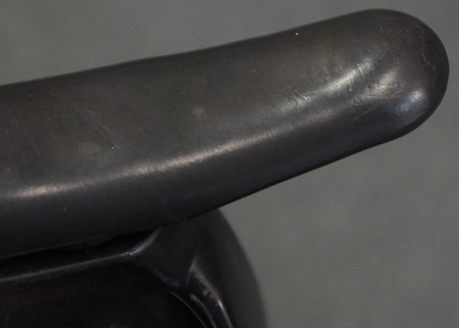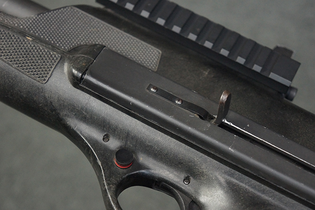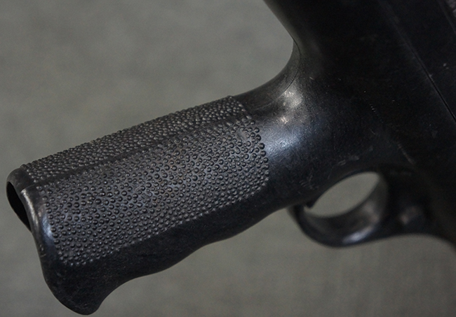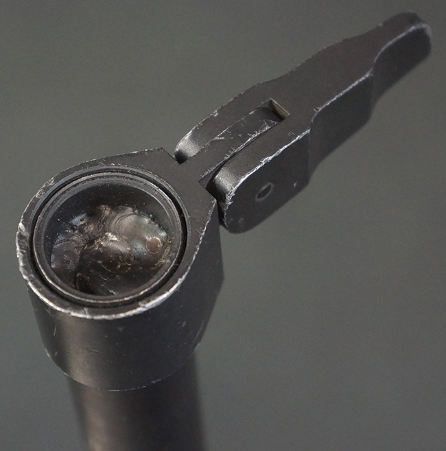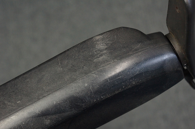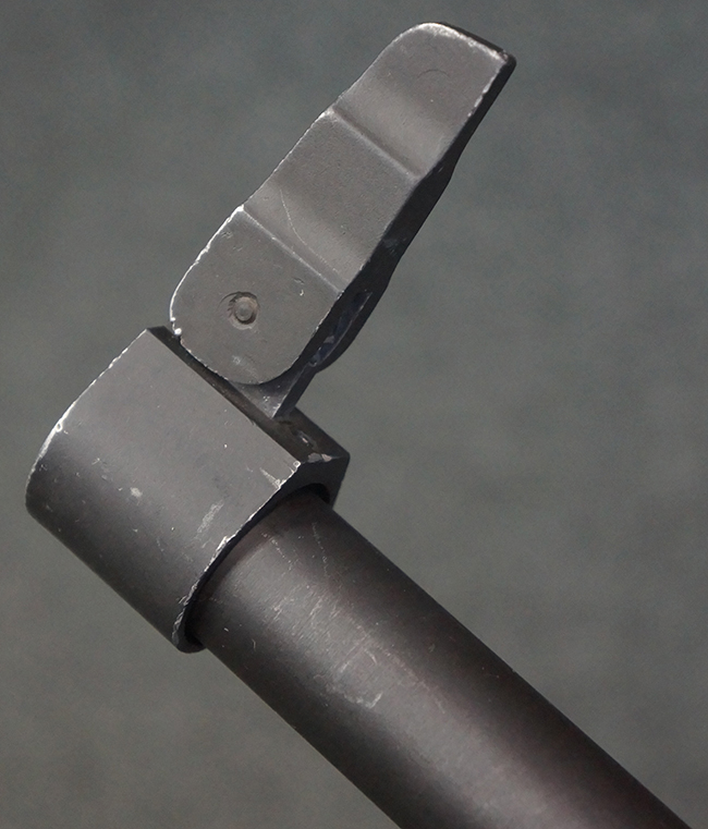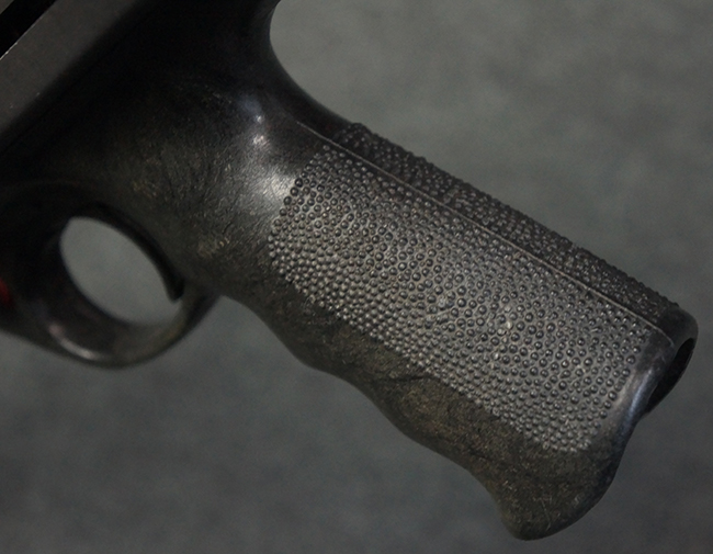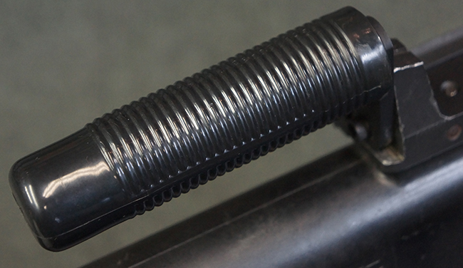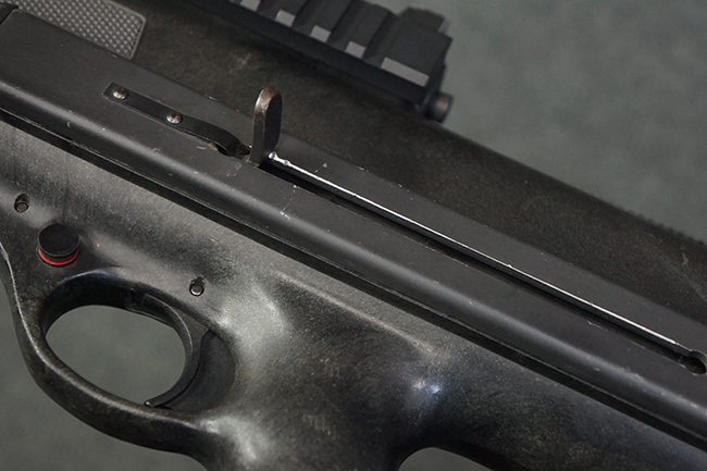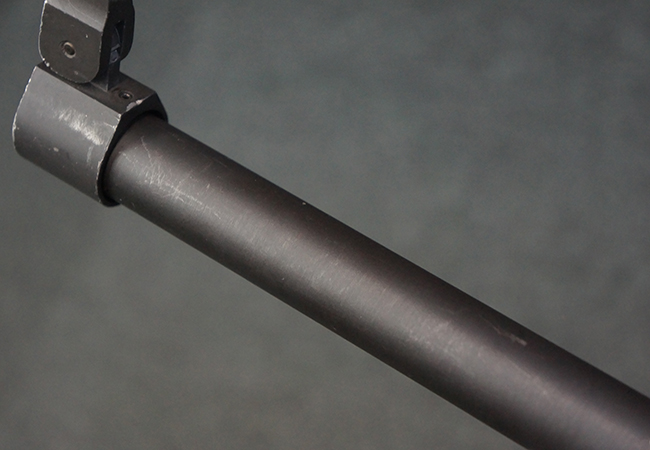 本品は全体にやや使用感が見受けられ、本体を覆う樹脂部は全体にやや小傷や擦れが見受けられるものの、目立った破損や欠損は見受けられず、比較的良好な状態が保たれています。 ハンドガードやグリップ部の滑り止めのモールドについては、若干の打ち傷は見受けられるものの、目立った摩耗は見られず良好に残っています。 銃身等の金属部についても、やや小傷や擦れは見受けられるものの、目立った破損や錆等は見受けられず、オリジナルのパーカー仕上げも比較的残っています。 傷みやすいゴム製のキャリング・ハンドルやバット・プレート部についても、若干の打ち傷や僅かなひびは見受けられるものの、大きな経年劣化や破損等は見られず、しっかりとした状態が保たれています。 フロント・サイトの起倒、バット・プレート部の回転については問題なく行う事が可能です。 セーフティ・ボタンの切り替えについても問題なく、安全位置でトリガーがロックされます。
