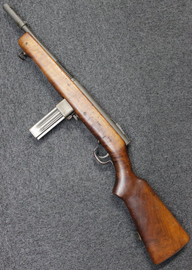 第二次世界大戦中にハーリントン&リチャードソン (Harrington & Richardson、H&R) 社により製造された、.45ACP弾を使用する短機関銃です。