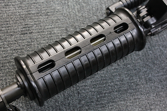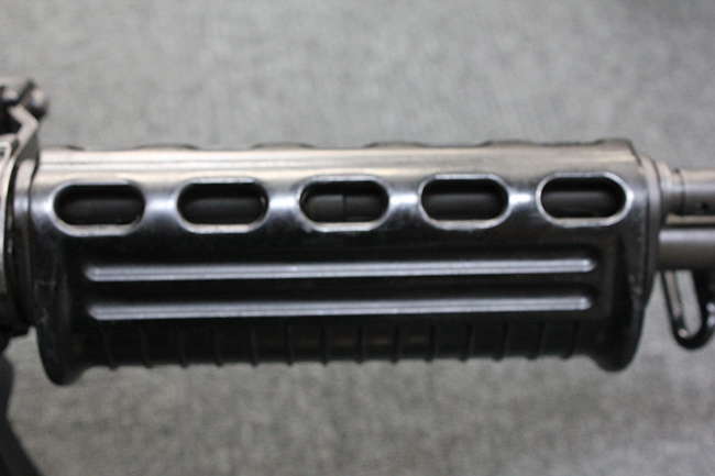 本ロットは小傷や擦れといった若干の使用感は見受けられるものの、いずれも保存状態の良好な美品です。 金属部は黒色焼付け塗装仕上げで大部分に残っています。 全体的にやや小傷や擦り傷が見受けられる他、おそらくスリング金具によって出来た地金の露出部分等はありますが、いずれも最小限で全体に良い雰囲気となっています。 樹脂部のハンドガードやグリップ、キャリング・ハンドルも同様で、小傷やスレなどはありますが目立った破損等は見受けられず、これ以上のものはなかなか望めないレベルの品です。 尚、本ロットの全ての個体でエジェクション・ポート・カバー取り付け基部の前部に僅かに熱により溶けた痕跡が見受けられます。 銃口部のライフル・グレネード装着部の周辺にやや金属表面の荒れが見受けられますが、ほとんど目立たないレベルです。 カービン独特の引き出し方式のストックも全く問題無く展開可能で、ガタツキも生じておりません。 バット・プレート部は擦れにより地金が出ています。 他にガス・カットオフやリア・サイトの調整も可能です。 尚、マガジン・スプリングは入っていません。