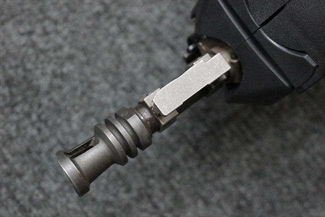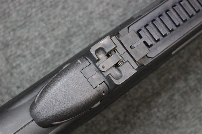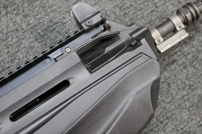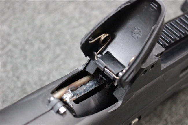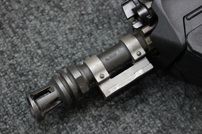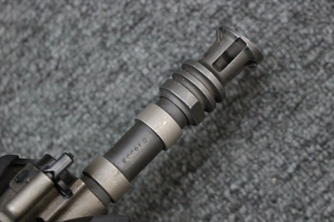本銃は保管に伴う若干の小傷がや擦れ見受けられる以外は、使用感も殆ど見受けられず、非常に良好な状態が保たれています。 セレクターの操作やバックアップ・サイトの起倒、マガジンの着脱については問題なく行う事が可能です。 マガジンは本体から引く抜く際にやや力が必要ですが、これはF2000特有のものです。 フラッシュ・ハイダー内部に若干の表面錆が見受けられますが、殆ど目立たないレベルです。