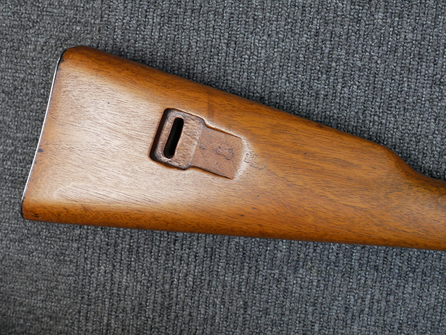 Gew.88 騎兵銃は全長の短縮に際して、フロント・サイト・ガードの形状に丸みを持たせた一体型のキャバルリー・ノーズ・キャップへの変更、射程の変更によりリア・サイトの変更。 また騎兵銃として背中に背負う仕様のため、スリングの前後の取り付けを左側面に移してあります。 バット・ストックにスリットを開けてスリングを通してスリングのバックルで留める方法は第二次大戦末までドイツ軍小銃の特徴として残されました。 ボルト・ハンドルもストレート型からL字型に変更し、ハンドル部分が身体に接しても抵抗がないスプーン状になりました。 ハンドルの干渉が少なくなった分、兵士がボルト操作をする際に滑らないように、スプーンの裏側に丁寧にチェッカーリングが入っています。
