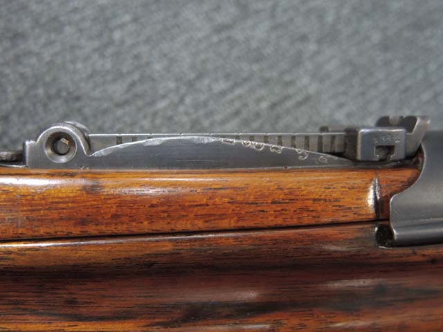 使用弾薬の変更に伴い、タンジェント型リア・サイトの射程を定める角度も変わったため、 45/66式ではリア・サイトの高さが46式に比べて低いものに変更されました。 尚、弾薬はケースが約2mm長いだけでほぼ同じサイズのため、45式と45/66式は装弾口の大きさに違いは見られず、このリア・サイトの違いで判別が可能となっています。 更に、より強力な新型弾に耐えられるよう、46/66式のレシーバー後部の上下タング部分には延長部品が追加されています。 アッパー・タングとロア・タングには、それぞれ約6,5cmと約5,0cmの延長部品が旧軍の三十年式や三十五年式小銃のロア・タング延長部と同様に追加されています。