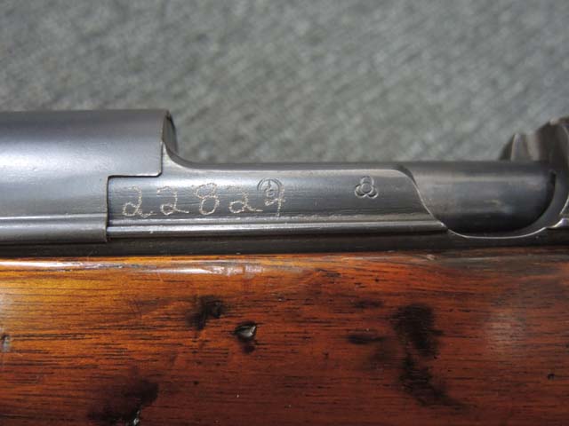本個体は機関部側面の旧軍小銃と同様の箇所に、東京砲兵工廠小石川小銃製造所の四つ輪刻印の他、二重丸にタイ文字と思われる文字が入った刻印が入っています。 薬室側面にはシリアルNo.の22824がケガキにより入っています。 薬室上部にはチャクリー王朝の象徴であるスダルシャナ・チャクラの紋章及びタイ文字により「ラッタナコーシン暦121年 (=タイ仏暦2445年=1902年)」を意味する刻印が入っている他、レシーバー後部上方にもタイ文字で刻印が入っています。