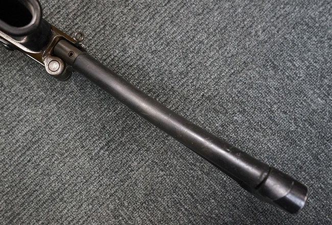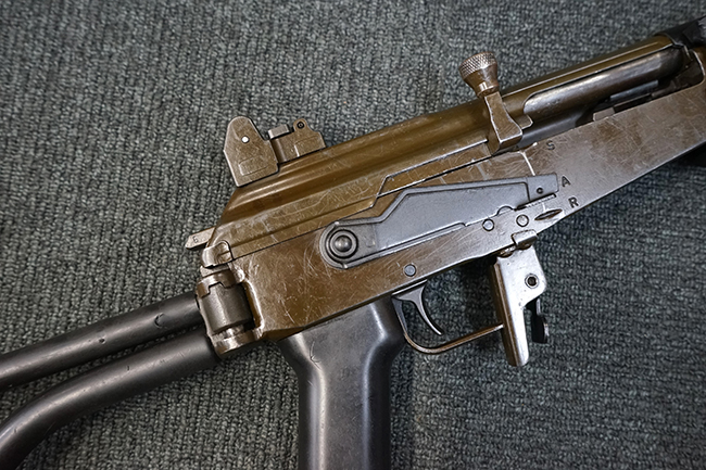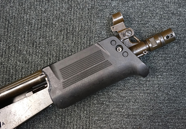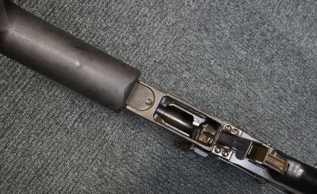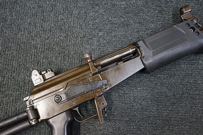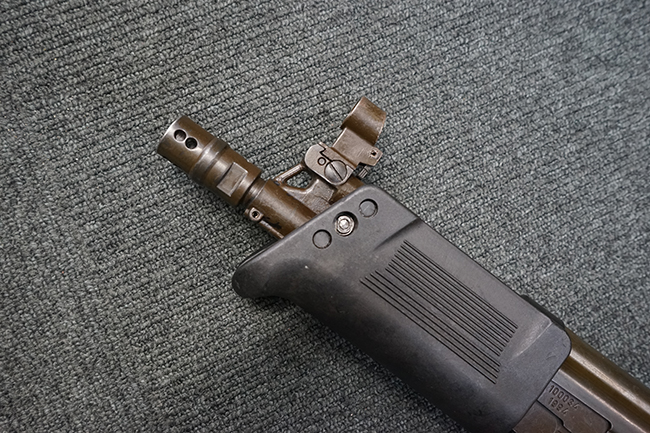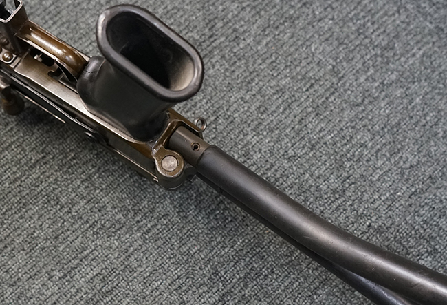 本品は上記の通り極初期にに製造された試作モデルと考えられ、排莢口付近のハンドガードが削られている他、グリップ右側付近のセレクターが排除され埋められているなど、試作品ならではの荒々しさが魅力です。 全体的な使用感の割には目立ったガタつき等は無く、プロによる整備の行き届いた環境で使用されていたことがわかります。
