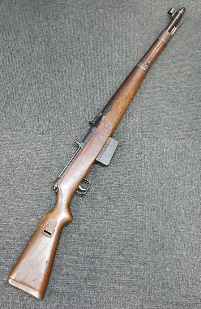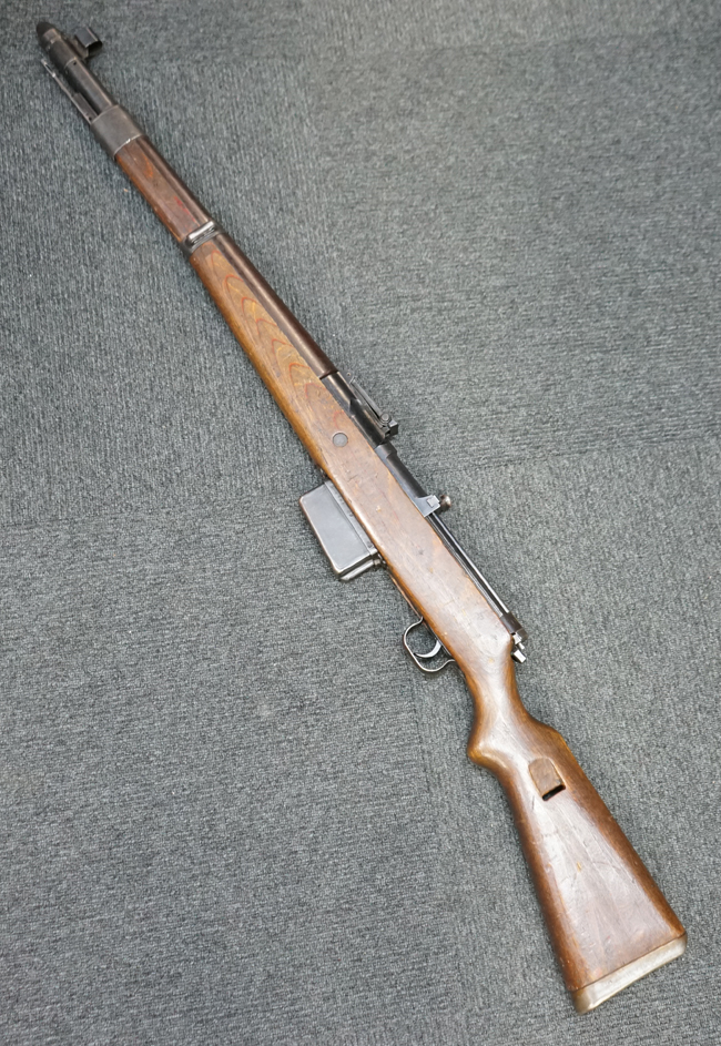 オリジナルのトリガーテンションのある、ボルトが閉じた状態で固定された旧加工品です。 Gew.41は日本国内に7挺程しかない貴重品ですが、本品はその中でも各部のシリアルNo.がマッチしたオリジナル度の高い品です。 弊社代表が約30年前に米国でヨーロッパ戦線に従軍した元米兵から直接購入した弊社がお勧め出来るオリジナル性の高い一挺です。(KK)(YS)