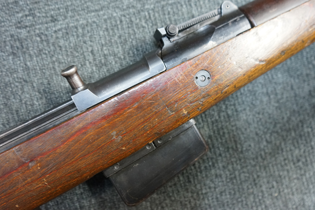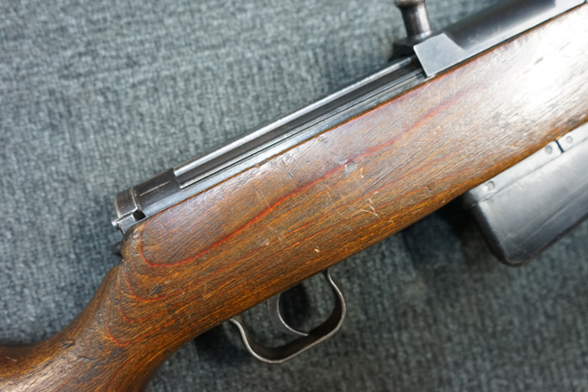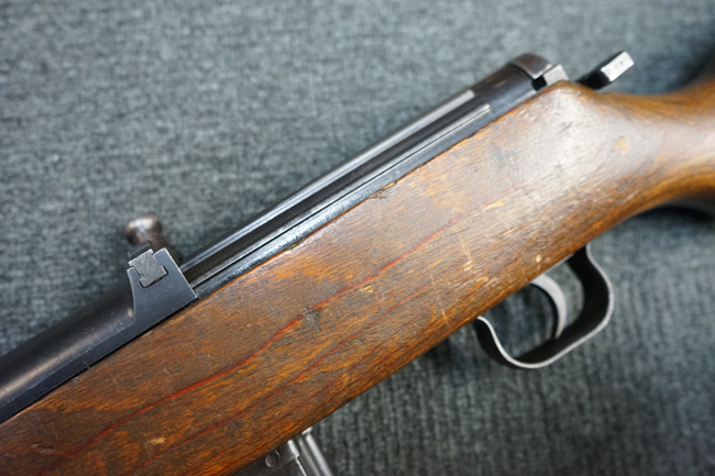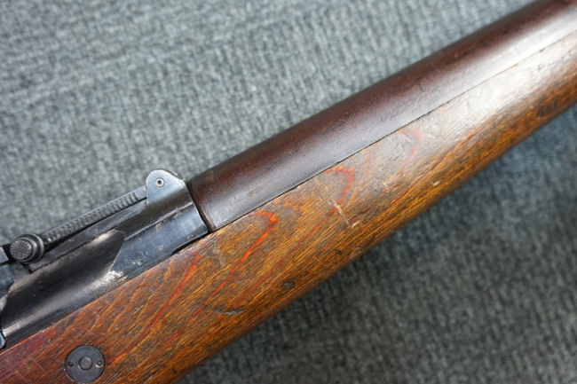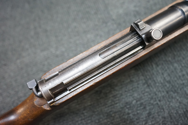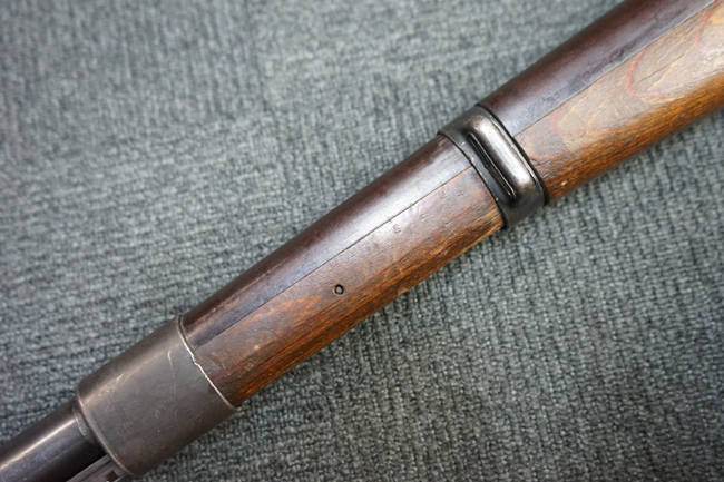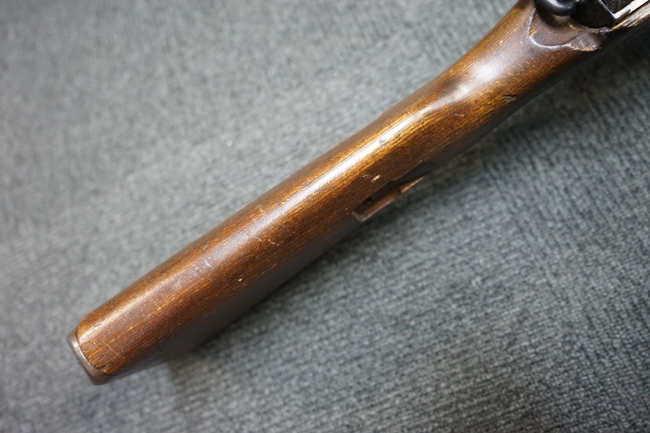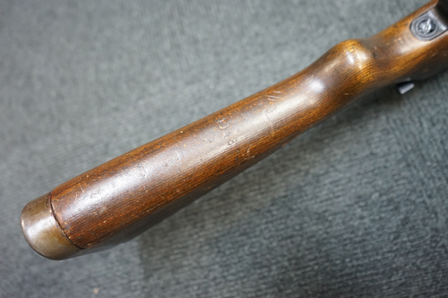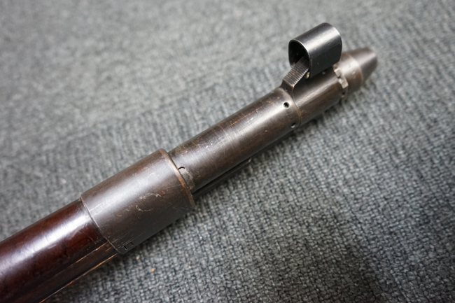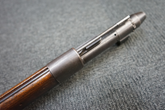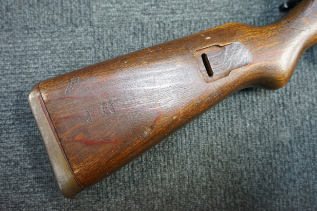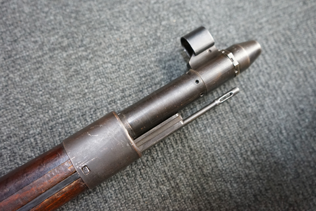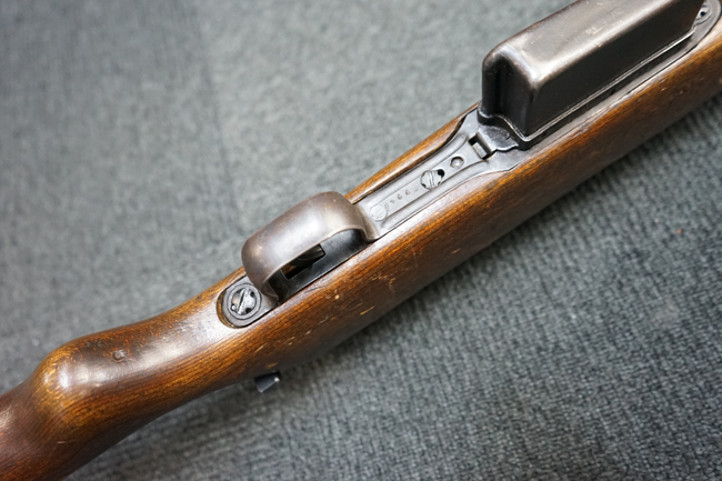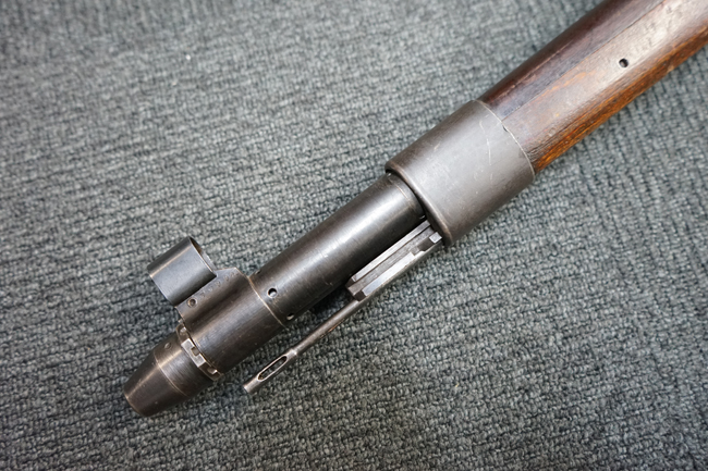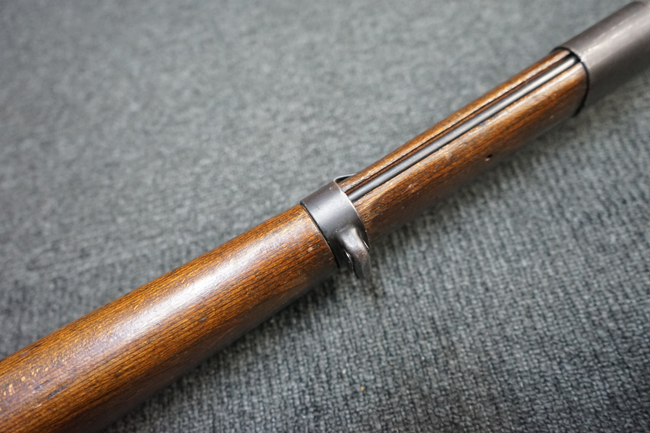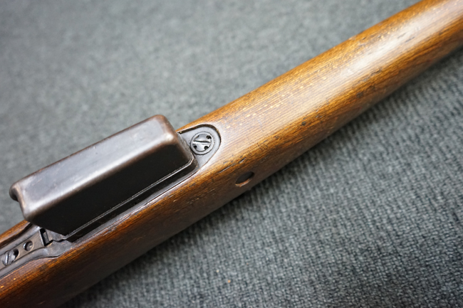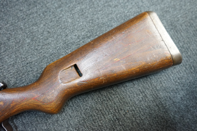 本品の金属部は適度な使用感が見受けられ、やや打ち傷や擦れ、若干の経年による褪色は見られるものの、大きな破損や欠損等は見受けられず、オリジナルの仕上げも比較的残った概ね良好な状態が保たれています。 木製銃床についても全体にやや打ち傷等が散見されますが、大きな割れや欠け等は見られず、こちらも全体にしっかりとした状態が保たれています。 樹脂製のアッパー・ハンドガードについても同様に、若干の打ち傷以外は目立った破損等は見られません。 傷み易いバット・プレートについてはやや経年による表面錆痕が見受けられますが、目立った変形等は見られず、銃床への取り付けもガタつきもなくしっかりとしています。 リア・サイトの調整は問題なく行う事が可能です。 クリーニング・ロッドが付属いたします。
