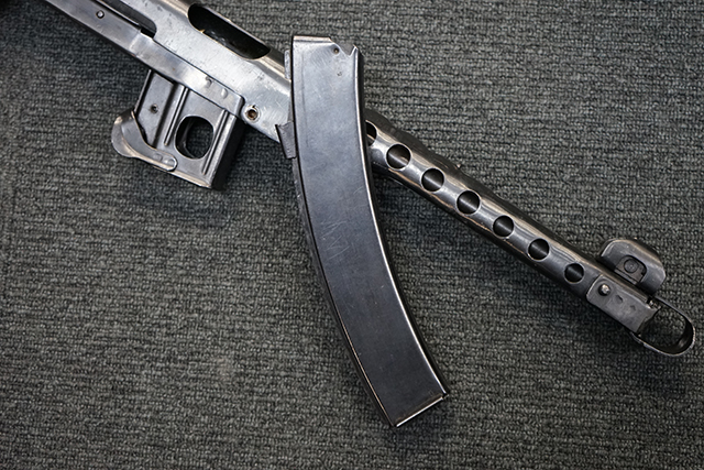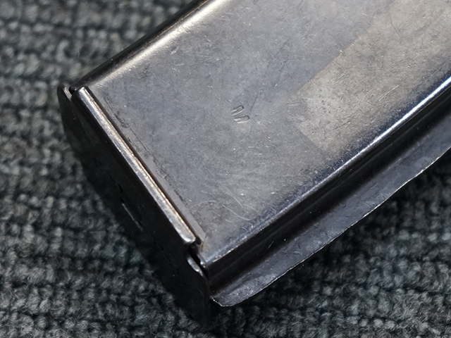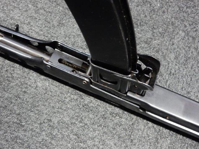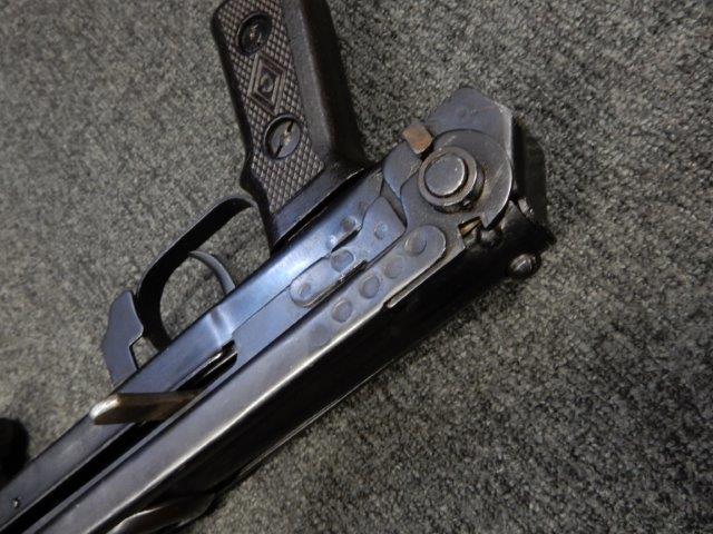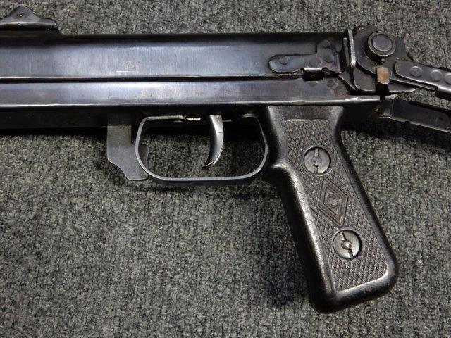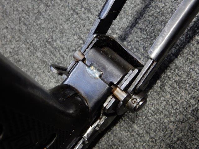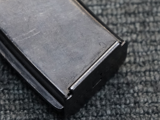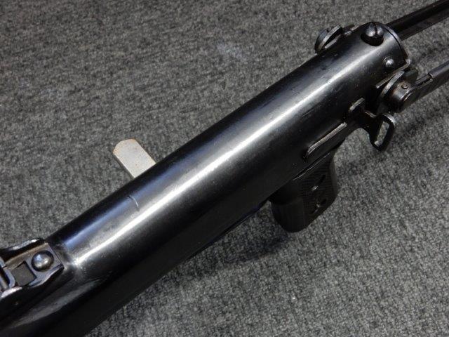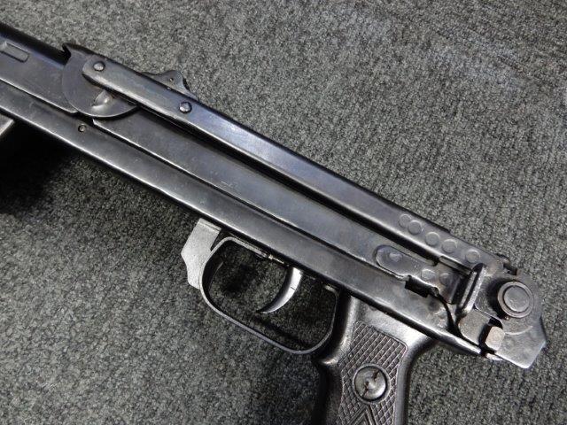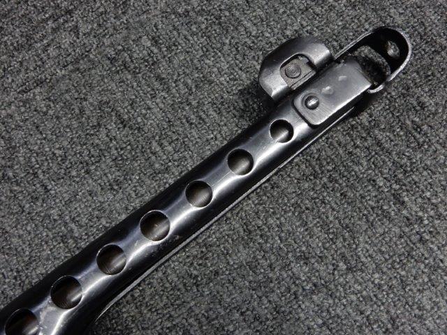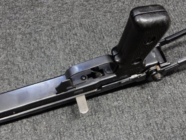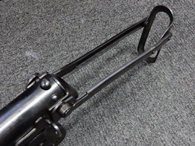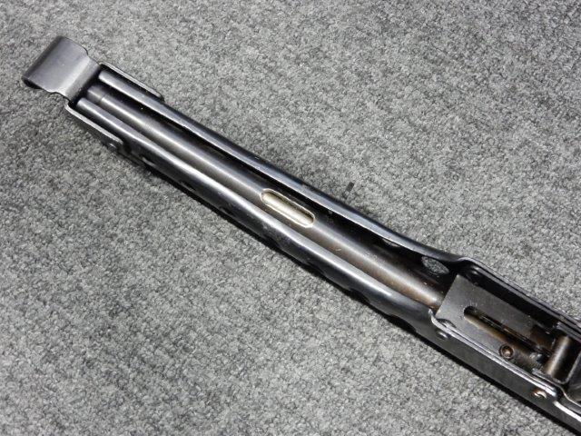 折り畳み式ストックの展開やマガジンの着脱、リア・サイトの切り替えについては問題なく行う事が可能です。 またレシーバーのテイクダウンは行えません。 ストックは展開時のガタつきも殆ど無く大変としっかりとしています。 付属のマガジンは若干の小傷や擦れ、僅かな表面錆は見受けられるものの、目立った凹みや変形等は見られず、こちらも比較的良好な状態が保たれています。 スプリングが入ったマガジンが付属します。