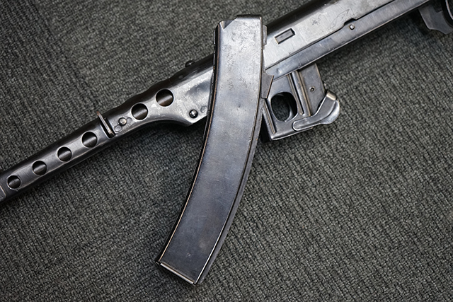 PPS43短機関銃は、1942年にドイツ軍包囲下にあったレニングラード市において生産が開始されたPPS42短機関銃の改良型です。 PPSh41短機関銃を基に軽量化及び省力化を図った設計がなされ、ロシア製の短機関銃としては初めて折り畳み式ストックが採用されました。