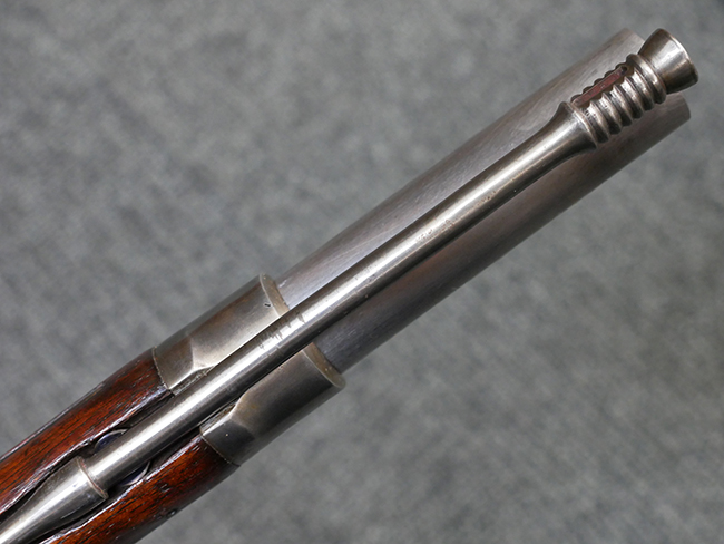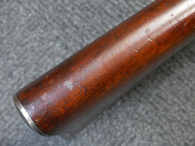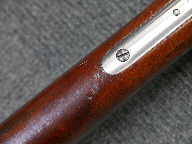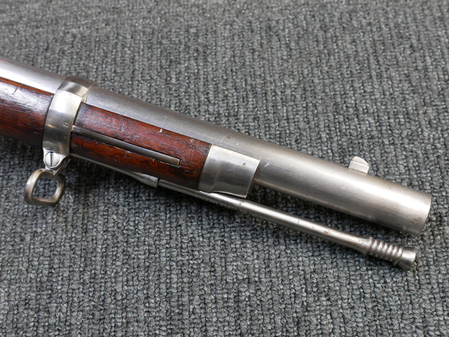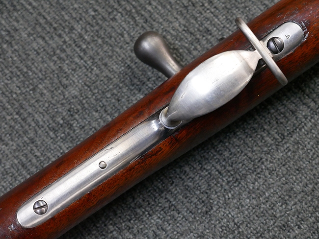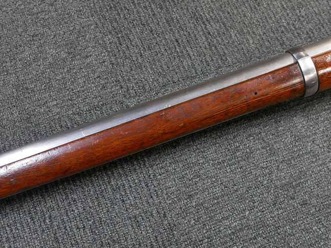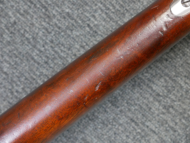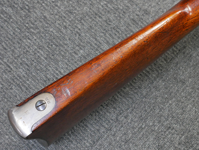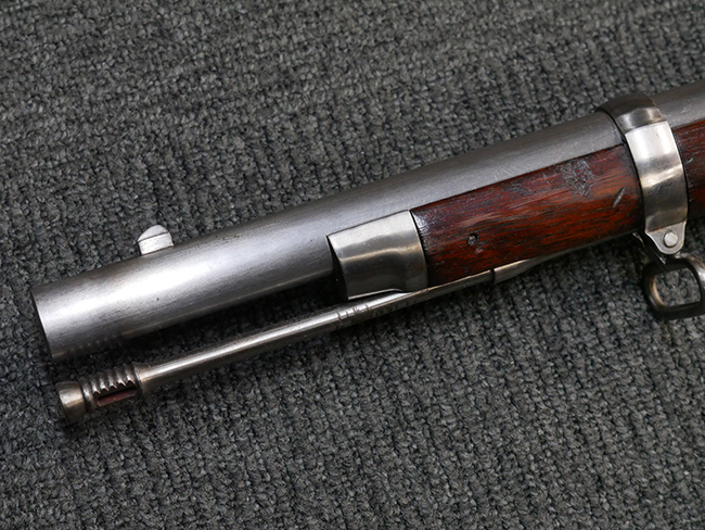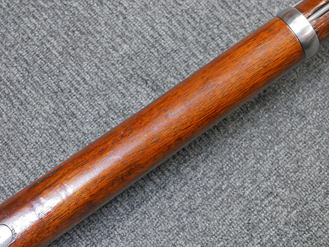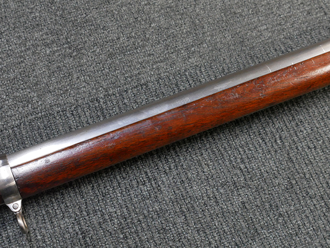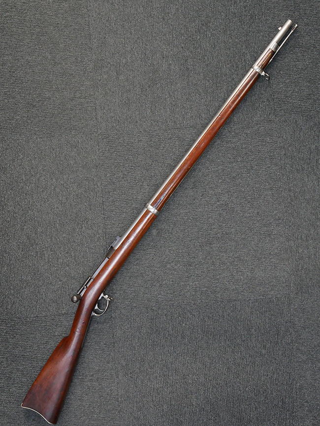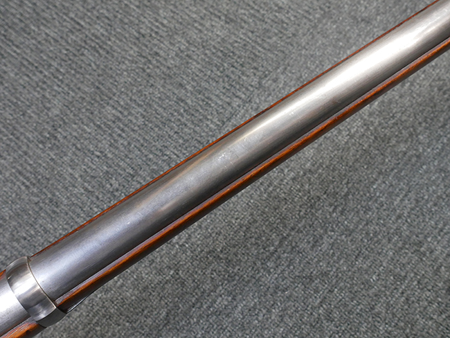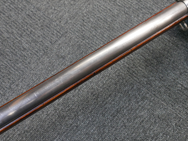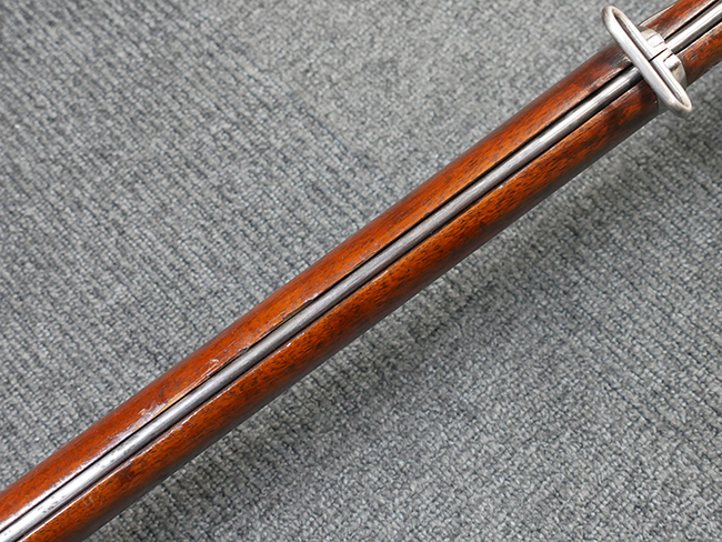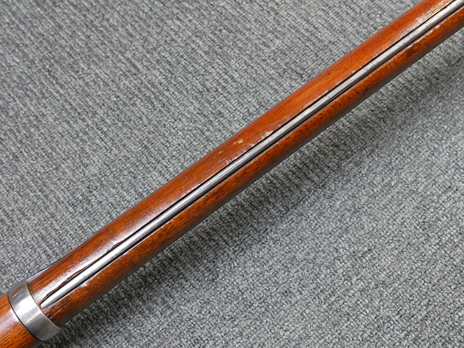 本品は製造時期を考慮すれば非常に良好な状態が保たれており、銃身やボルト、トリガー・ガード、バレル・バンドといった金属部は白磨きの仕上げが美しく保たれている他、機関部についてもオリジナルのケース・ハードゥン仕上げが確認できます。 木製銃床についても、若干の打ち傷や線傷は見受けられるものの、目立った破損や欠損等は見受けられず、オリジナルの艶のある仕上げが全体に残った良好なコンディションが保たれています。 銃床下面のさく付け取り付け溝周辺に僅かに欠けが見られるものの、殆ど気にならないレベルのものです。 傷み易いバット・プレート部についても若干の打ち傷や擦れが見られるものの、目立った腐食や変形等は見られず、こちらも白磨きの仕上げが比較的良好に保たれています。 オリジナルのさく杖が付属致します。 総じて希少性、コンディション共に申し分のない品です。 価格は張りますが、試作品としての希少性、程度の良さ、歴史的背景などを考えても価値のある、国内唯一の品です。
