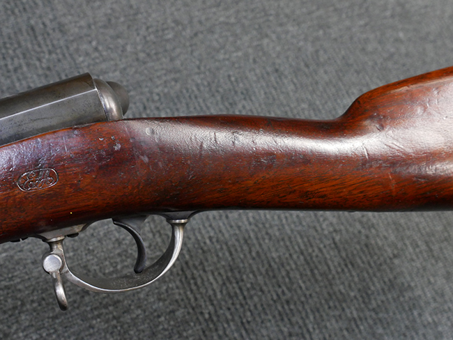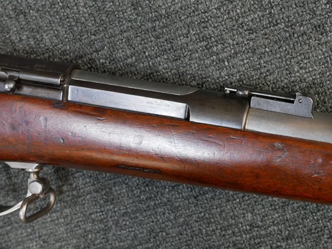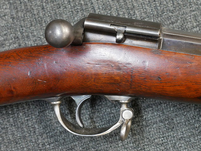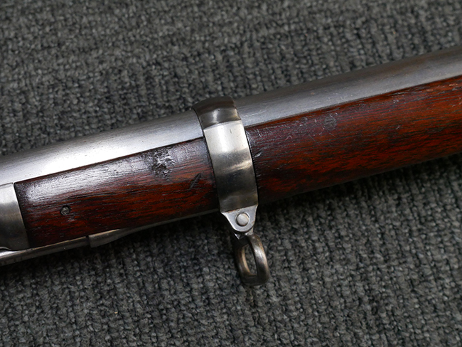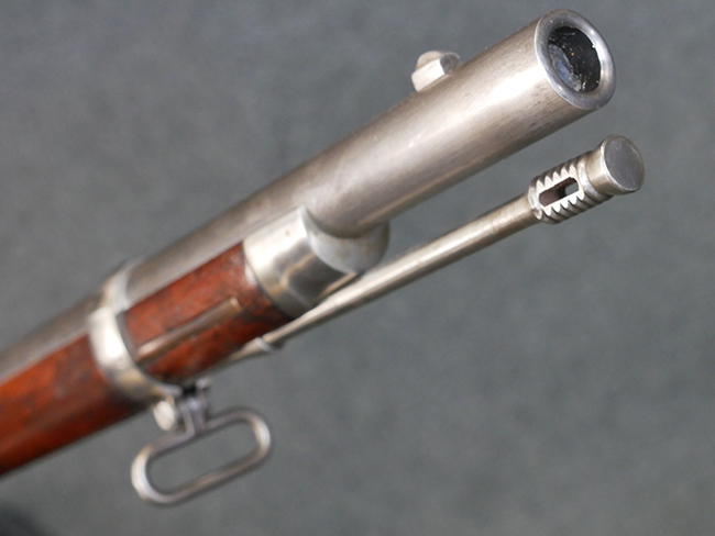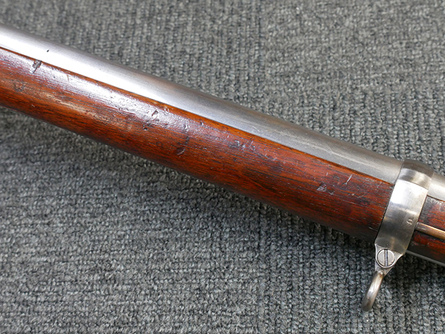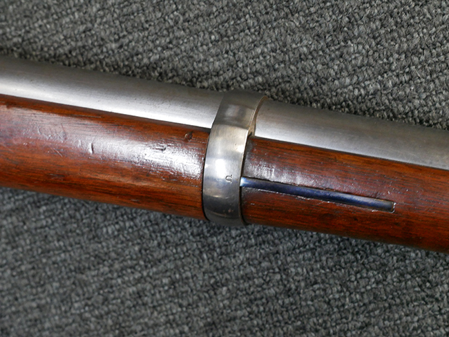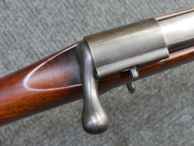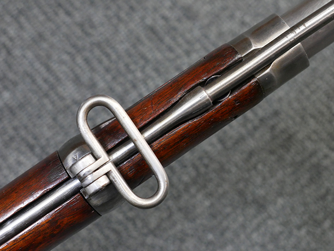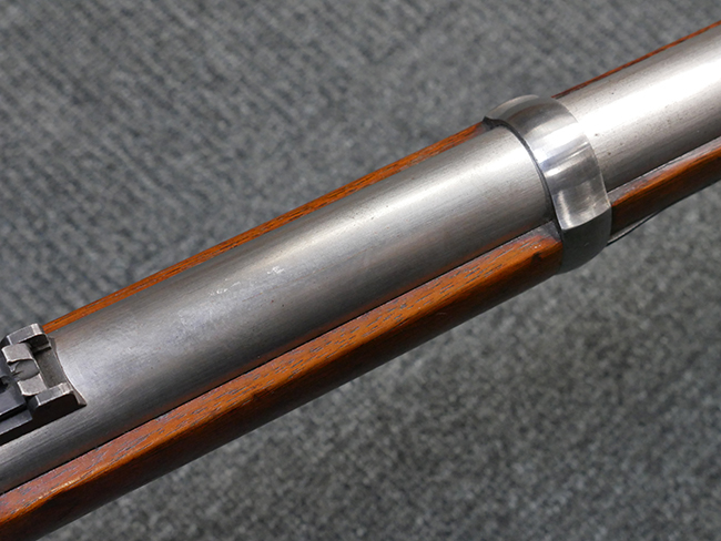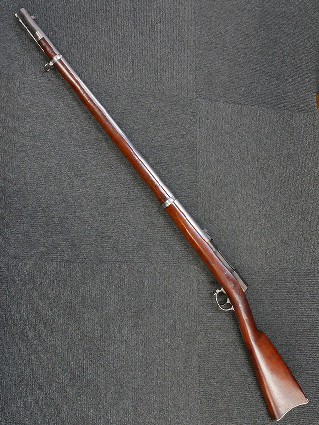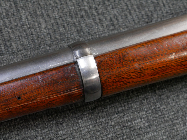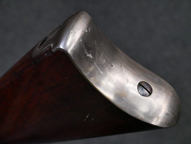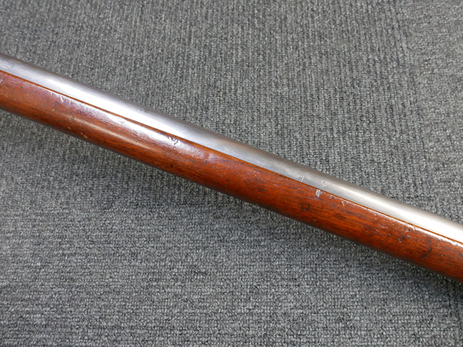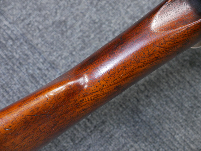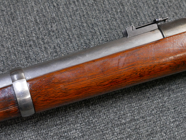本品は製造時期を考慮すれば非常に良好な状態が保たれており、銃身やボルト、トリガー・ガード、バレル・バンドといった金属部は白磨きの仕上げが美しく保たれている他、機関部についてもオリジナルのケース・ハードゥン仕上げが確認できます。 木製銃床についても、若干の打ち傷や線傷は見受けられるものの、目立った破損や欠損等は見受けられず、オリジナルの艶のある仕上げが全体に残った良好なコンディションが保たれています。 銃床下面のさく付け取り付け溝周辺に僅かに欠けが見られるものの、殆ど気にならないレベルのものです。 傷み易いバット・プレート部についても若干の打ち傷や擦れが見られるものの、目立った腐食や変形等は見られず、こちらも白磨きの仕上げが比較的良好に保たれています。 オリジナルのさく杖が付属致します。 総じて希少性、コンディション共に申し分のない品です。 価格は張りますが、試作品としての希少性、程度の良さ、歴史的背景などを考えても価値のある、国内唯一の品です。