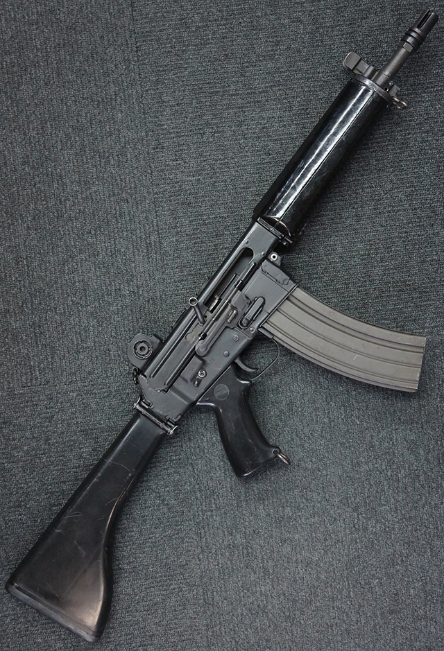 アーマライト AR18 自動小銃は、1963年にアーマライト社で開発された、5,56mm×45弾を使用する自動小銃です。 同じアーマライト社で開発されたAR10やAR15自動小銃が可能な限り軽量な自動小銃にすることをコンセプトに設計されたのに対して、AR18は生産性の高い自動小銃を目指して設計が行われました。