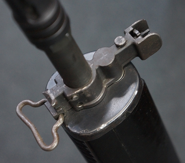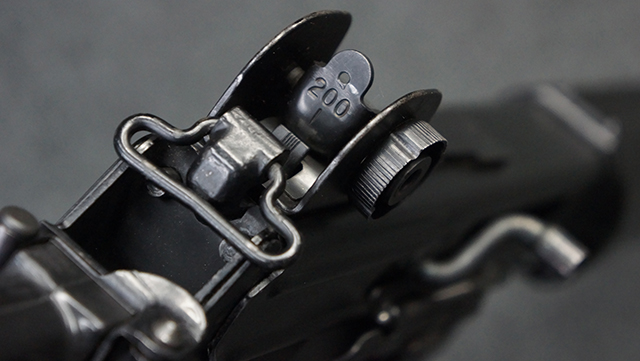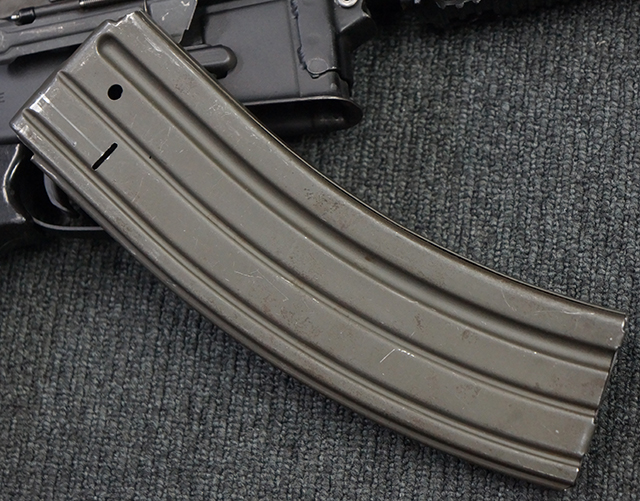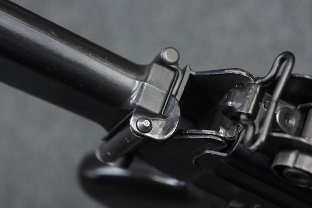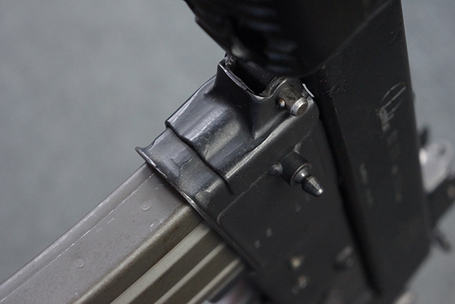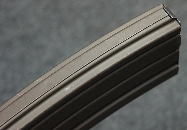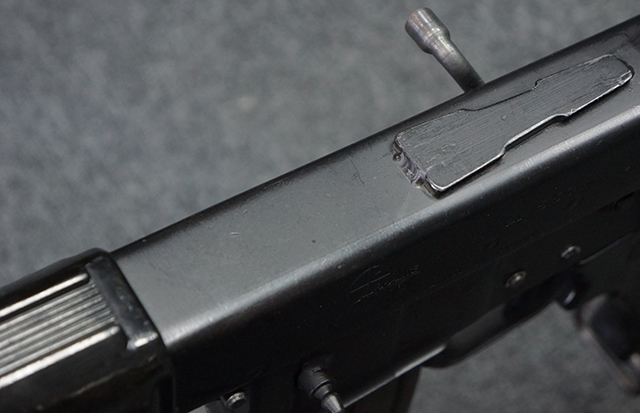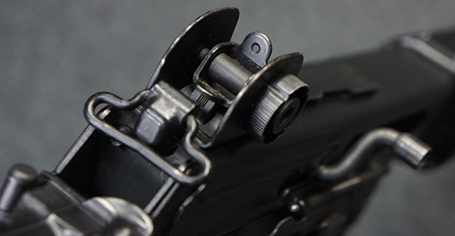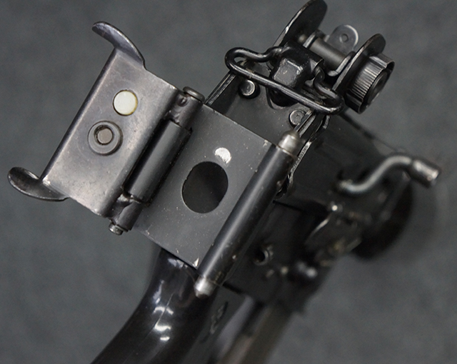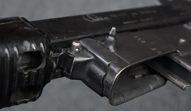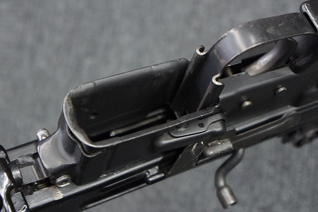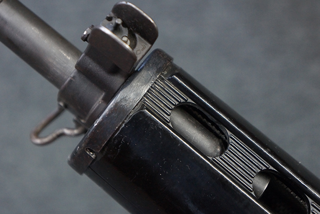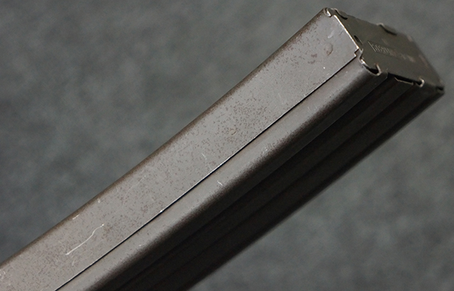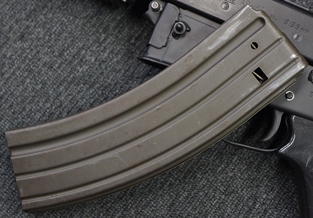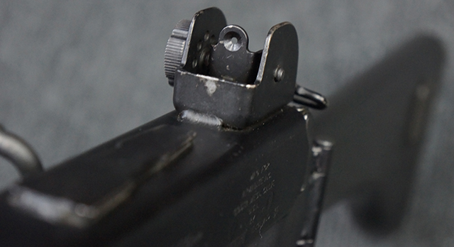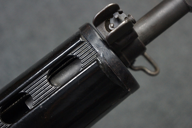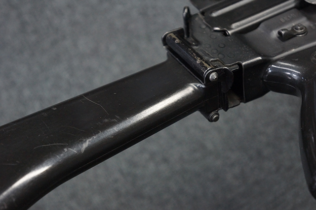 マガジンの着脱やリア・サイトの調整、ストックの折り畳み/展開については問題なく行う事が可能で、ストックは展開時のがたつきもほとんど見られません。 セーフティ・レバーの切り替えについても問題なく、安全位置でトリガーがロックされます。 付属のマガジンはスターリング社製の40連タイプで、やや小傷や擦れ、経年による褪色が見受けられますが、現状目立った凹みや変形等は見られません。 尚、マガジン・スプリングは入っています。