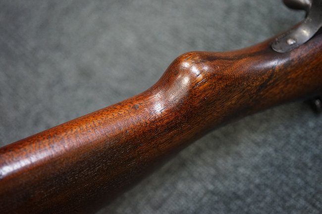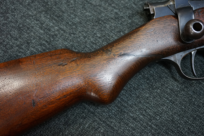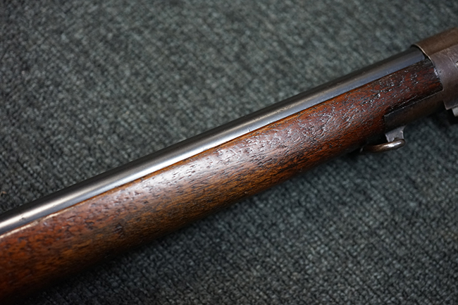 銃そのものは非常にしっかりとした、ガタの全くないキッチリとした造りで、可動部であるリア・サイト の動きは完璧で各目盛でしっかりとロックされます。 目盛もしっかりと残っています。 120年以上前の品だけあり使用感は多少あるものの、素晴らしいコンディションです。