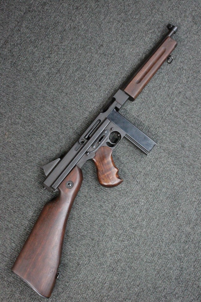 トンプソン短機関銃は元々サブ・マシンガンというジャンルが生まれる前の「個人が携行可能で機関銃のように連射できる武器」というコンセプトから開発が始まりましたが、新たなコンセプトの兵器ゆえ、当初の軍などの評価は決して芳しいものではありませんでした。 そんなトンプソンの最初の有効性を証明したのは軍ではなく、禁酒法時代の景気の良いギャングたちであり(この時はM1921とM1927モデルが主であったようです)、このためオート・オードナンス社とトンプソン・サブ・マシンガンは一時社会的イメージを落とし、この時期にオート・オードナンス社は経営の最大の危機を迎えたほどです。 ところが皮肉にもギャングたちの使用によりトンプソンの有効性は証明され、連邦捜査局 (FBI) や各地方の治安当局でも、こうした犯罪者に対抗するべくトンプソンM1928短機関銃が採用されました。 それと同じモデルがイギリスでは「トミーガン」の名称でコマンドの象徴と言われました。その後米軍でもニカラグアでの使用で実戦での実績も作り、ついに第二次世界大戦の幕開けと共にトンプソン短機関銃は本格的に各国軍に採用されるようになります。