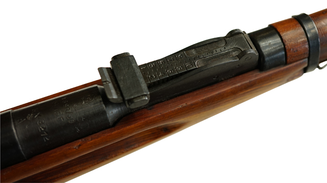 本品は全体に使用感も少なく、機関部や銃身といった金属部は若干の小傷や擦れを除いて目立った欠損や錆等も見受けられず、全体に黒染め仕上げが残った良好な状態が保たれています。 リア・サイト下部の銃身側面に僅かに朽ち込み痕が見受けられるものの、殆ど気にならないレベルのものです。 白磨きのボルト部についても若干の時代錆を除いて目立った朽ち込み等は見受けられず、概ね良好なコンディションが保たれています。 銃床やアッパー・ハンドガードといった木部についても同様に、若干の打ち傷を除いて大きな破損や欠損等も見受けられず、オリジナルの木部の明るい色味が良好に保たれています。 傷み易いバット・プレート部についても、若干の表面錆は見られるものの、現状では目立った朽ち込みや変形等は見られず、銃床への取り付けもガタつきもなくしっかりとしています。