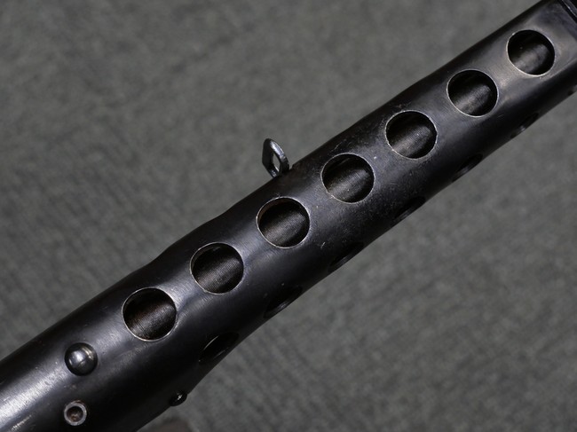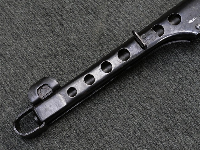 PPSh41短機関銃のフォルムを残しながらも、レシーバーには大胆なプレス工法を取り入れており、町工場での生産を前提として比較的小型のプレス機でも製造できるよう設計されていました。 各部の固定についても、ピンやスポット溶接、鋲を使用する割り切った設計となっております。 そのコストパフォーマンスは1挺あたりの製造時間に10時間以上費やすPPSh41に対して、PPS43は3時間と言われていた事からも窺えます。