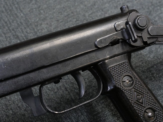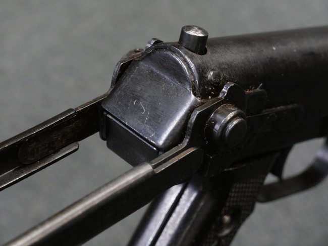 溶接によりトリガーが固定された、ボルトが開いた状態で固定された新加工品です。 (TK)