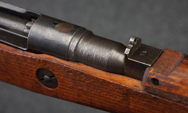 末期型は当時の国状により各部の製造工程を簡略化された仕様で、初期型と比べると同じ九九式とは思えないような品質の違いがあります。九九式の中では最多の生産数といわれており、正規工廠以外の民間企業で生産された九九式の多くが末期型になります。そのため細部に多くの仕様があり、最もバリエーションに富んだモデルです。弊社での末期型定義は照尺(リア・サイト)が固定式の仕様の品を末期型としております。