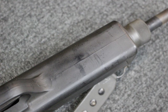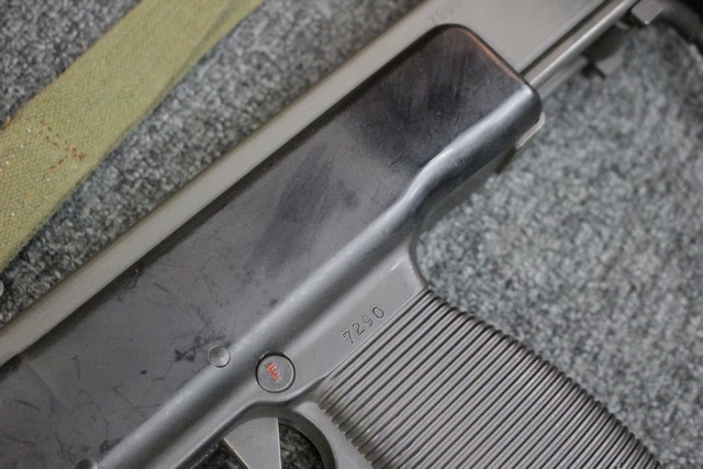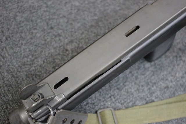 本品は全体的に状態が良く目立ったダメージは見受けられません。 金属部はバレルの一部とスリング補強金具の止め具に少々仕上げの剥離が見られる他、スリング・スイベルと一体のコッキング・ハンドル周辺やレシーバー・エンド・キャップの作動部等、角ばった部分を中心にやや擦れや小傷が散見されるものの、全体としては大きな欠損等は見られません。 また、表面処理は全体に鮮やかに残っており退色も少ない印象で、良好なコンディションが保たれています。