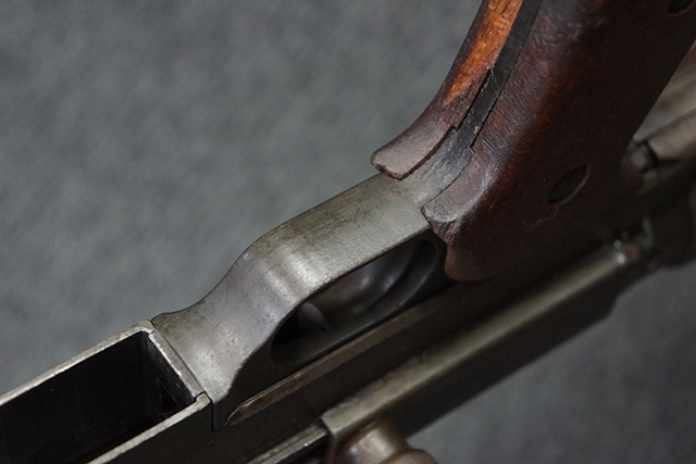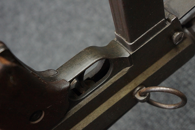 トリガーテンションのない、ボルトが開いた状態で固定された新加工品です。 (KK)