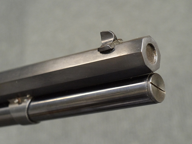 ウィンチェスター M1873には上記のような口径の違いに加えて、銃身長が20インチ、24インチ、30インチのカービン、ライフル、マスケットと呼ばれるバリエーションが製造されました。 銃身はカービン及びマスケットではラウンド・バレルのみでしたが、ライフルではオクタゴン・バレル及びハーフ・オクタゴン・バレル (前半がラウンド、後半がオクタゴン・バレル) のモデルも製造されました。 尚、ライフルではフォア・アーム (ハンドガード) 先端がキャップにより固定されているのに対し、カービン及びマスケットではバレル・バンドによりフォア・アームが固定されています。