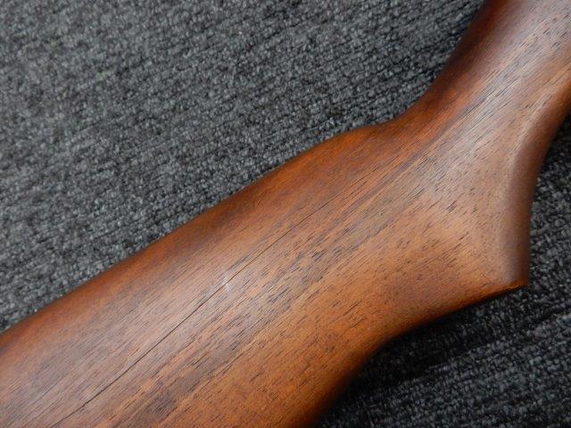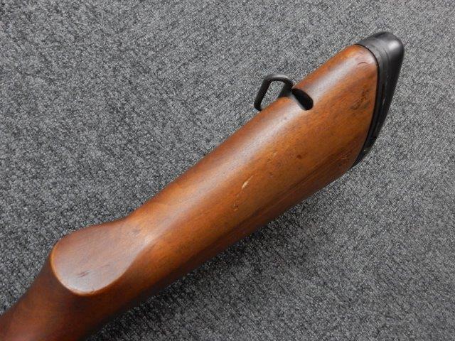 BM59固定ストック型特有の症状として、ストック右側面に細いヒビか線傷が見られますが強度的に問題は見られず、無可動銃としての使用において、大きく広がる物ではありません。 ゴム製バット・プレートも劣化による破損は最小限で、しっかりとした弾力・形状を保っています。 若干の小傷はありますが、殆ど気にならないレベルです。 またバット・プレートにはクリーニング・キットを収納するドアが設けられています (クリーニング・キットは付属致しません)。
