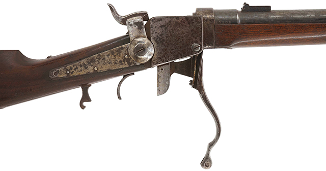 スタール M1865 カービンは南北戦争で使用された紙製またはリネン製薬莢を使用する単発後装の外火管打ち式騎兵銃であるスタール M1858 カービンの改良型で、初期の縁打式金属製薬莢を用いるモデルです。