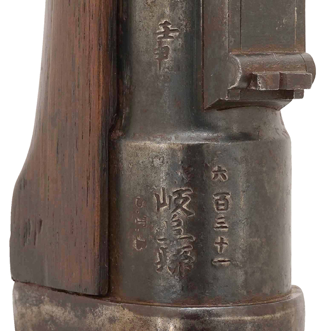 本品の銃身には「壬申六百三十一 岐阜縣」の刻印が入っており、銃床にもほぼ同時代に国内で打刻されたと考えられる「再改」という刻印が確認できます。