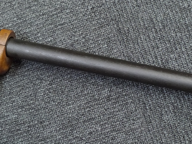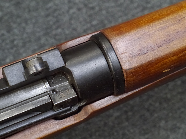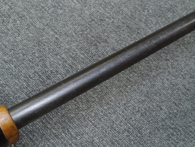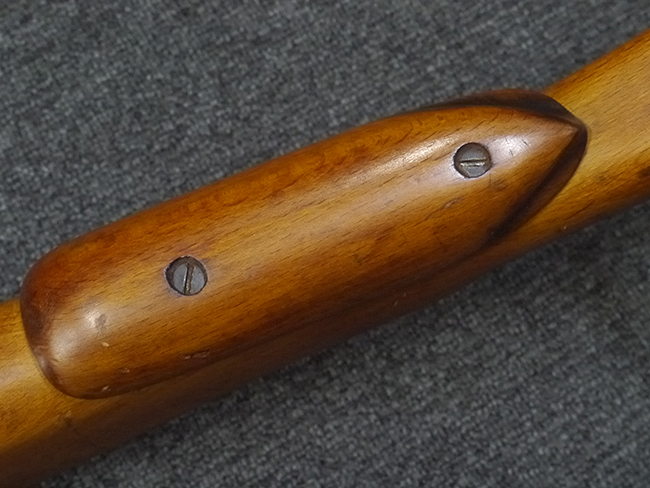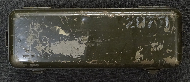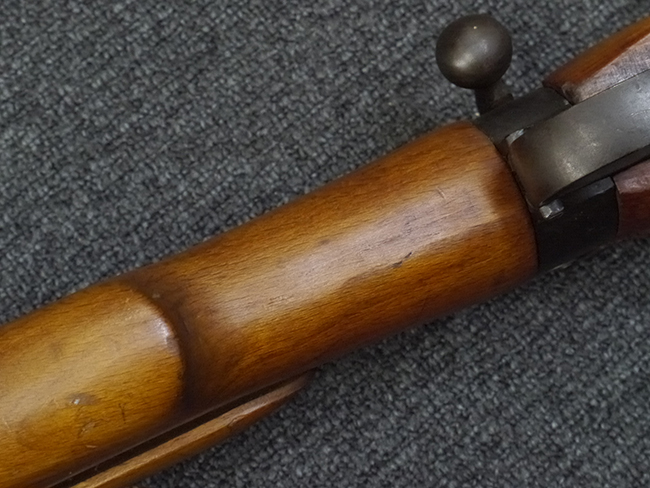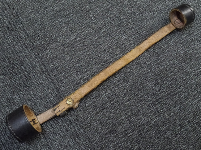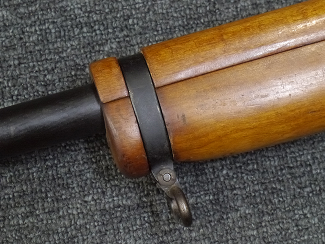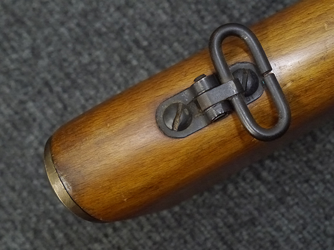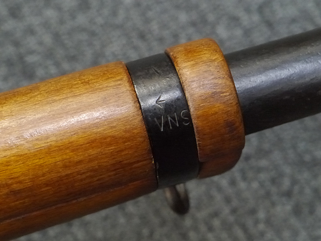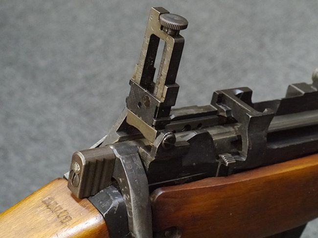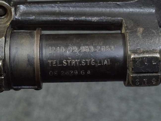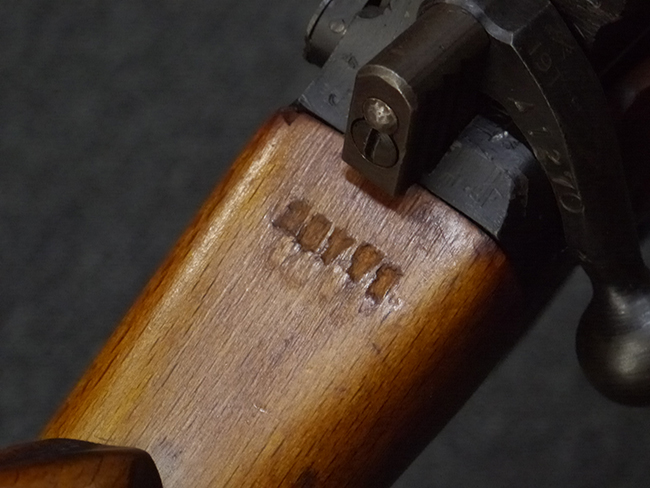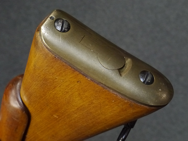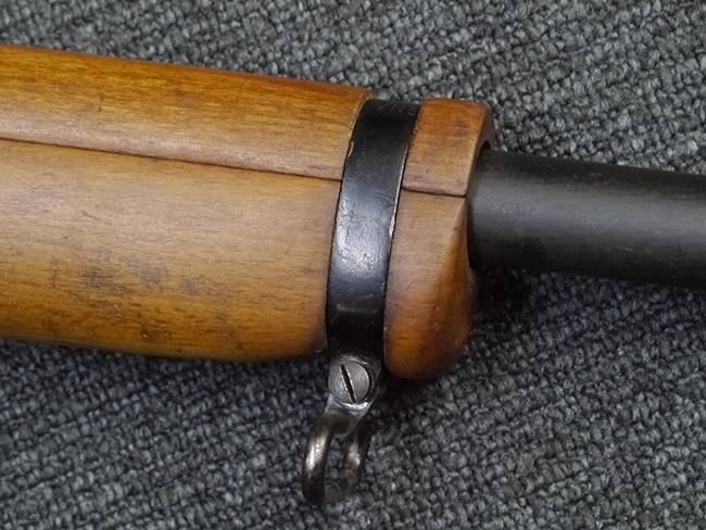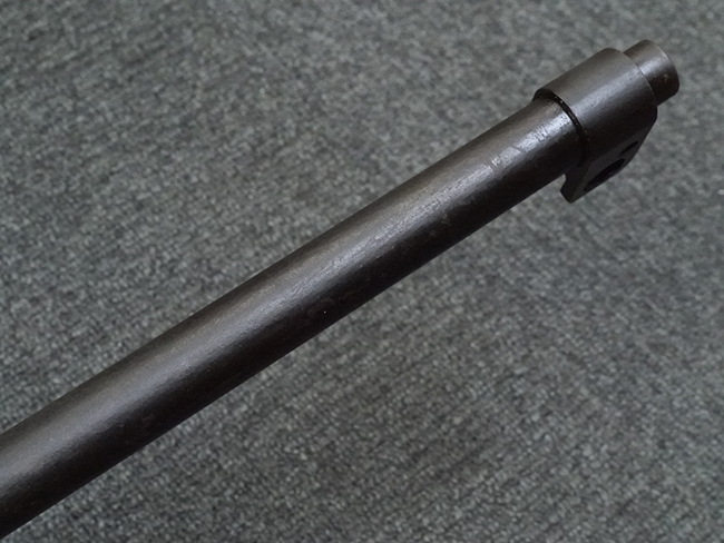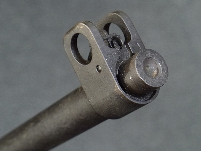 付属のNo.32スコープについては、スコープ本体のシリアルNo.が再整備時の打ち直しにより28771、マウントについても打ち直しによりA1270となっています。 スコープは外装にやや使用感が見られ、黒焼付塗装の一部に剥がれが見受けられるものの、視野は非常にクリアで目立った曇りや塵等は見られません。 後側のスコープ固定用ノブに僅かな歪みが見られが、スコープ自体は問題なく固定することが可能です。 本品には銃本体に加えて金属製スコープ・ケース、革製レンズ・カバーが付属します。