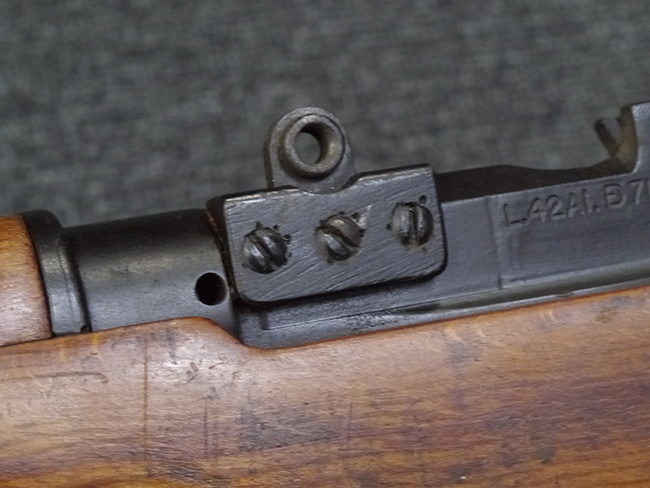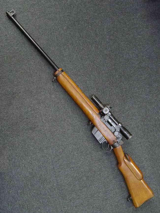 L42A1 狙撃銃は海外の価格が高騰している品です。 トリガーテンションのある、ボルトが完全に閉じた状態で固定された旧加工品です。(TK)