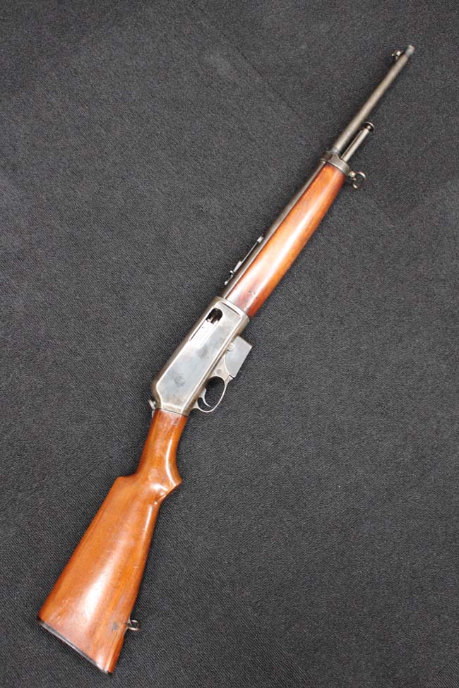 ウィンチェスター社 (Winchester Repeating Arms Company) により1910年から1936年にかけて製造された半自動小銃で、モデル10とも呼ばれます。 作動方式は反動利用のブローバック式で、使用弾薬は.401 Winchester Self-Loading (.401 SL/.401 WSL) 弾で、反動利用のブローバック式により作動しました。 給弾は4発の着脱式弾倉により行われました。 M1910自動小銃の設計は、1901年8月にウィンチェスター社の銃器設計者トーマス・クロスリー・ジョンソン (Thomas Crossley Johnson) が取得したパテントに基づいていました。 尚、同パテントに基づいて設計された銃器としては、M1910の他にもリムファイアのウィンチェスター M1903やセンターファイアのM1905、M1907が存在します。 M1910自動小銃にはスタンダードもしくはプレーン・フィニッシュと呼ばれる仕上げの通常モデルの他、ハンドガード及び銃把部分にチェッカリングが施されたデラックスと呼ばれる高級仕上げのモデルが存在しました。