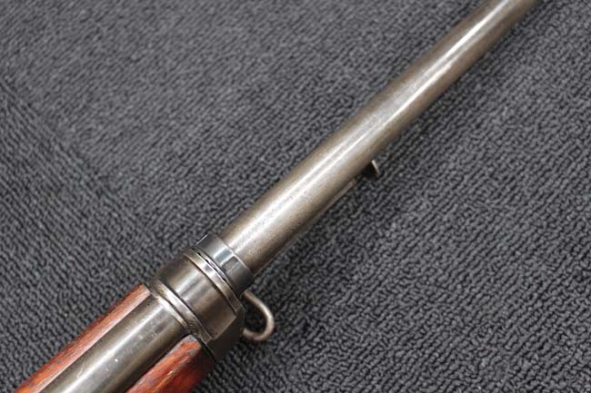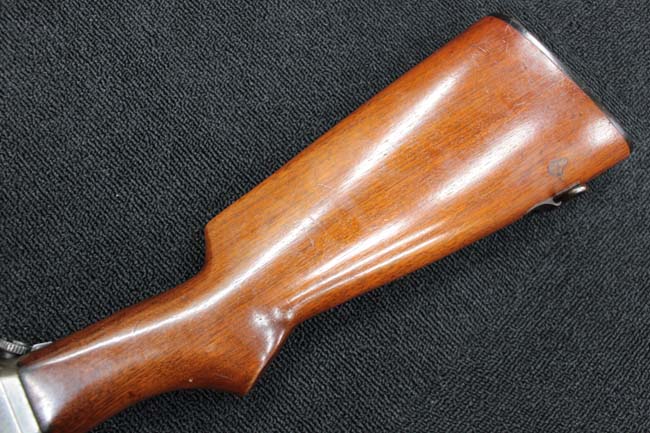 本品のレシーバーや銃身といった金属部は全体に打ち傷や経年による褪色の他、一部に仕上げが薄くなり金属の地肌が表れている箇所が見受けられるものの、目立った欠損等は見受けられず、概ねしっかりとした状態が保たれています。 木製のハンドガードやバット・ストックについても、やや打ち傷や線傷が散見される他、ハンドガードにひびの補修痕が見受けられるものの、強度的には概ねしっかりとした状態が保たれています。 バット・プレートは現状目立った割れや欠け等は見受けられません。 マガジンの着脱については問題なく行う事が可能です。 マガジンは一部が固定されています。