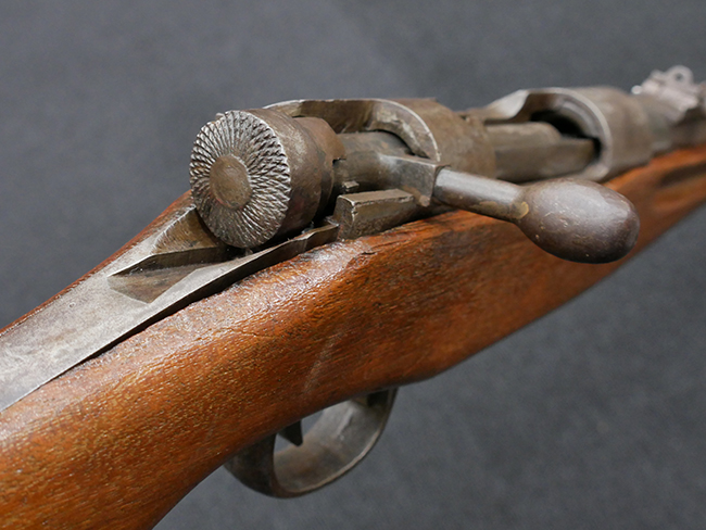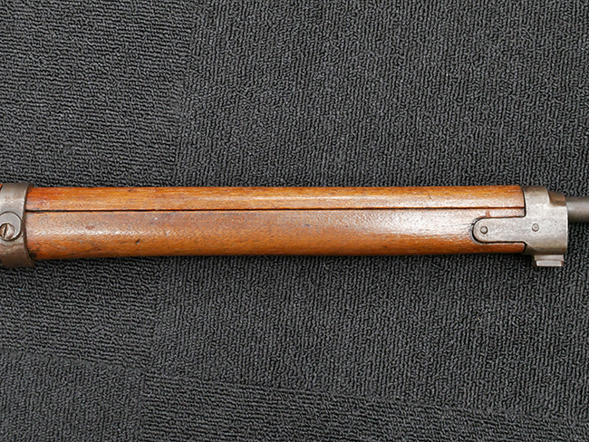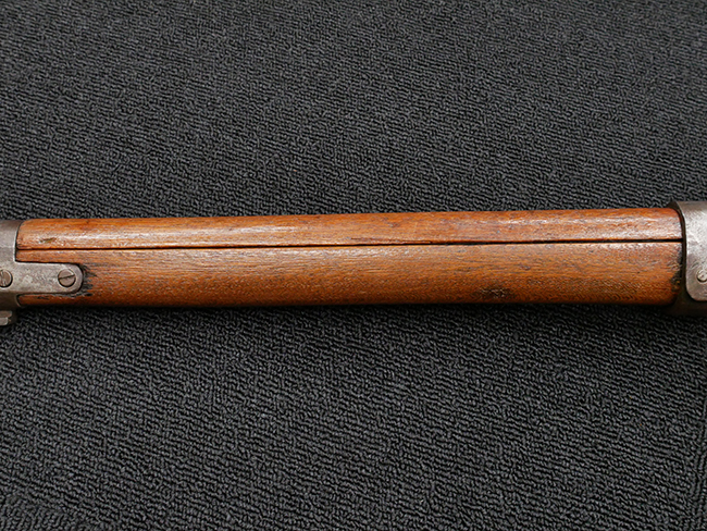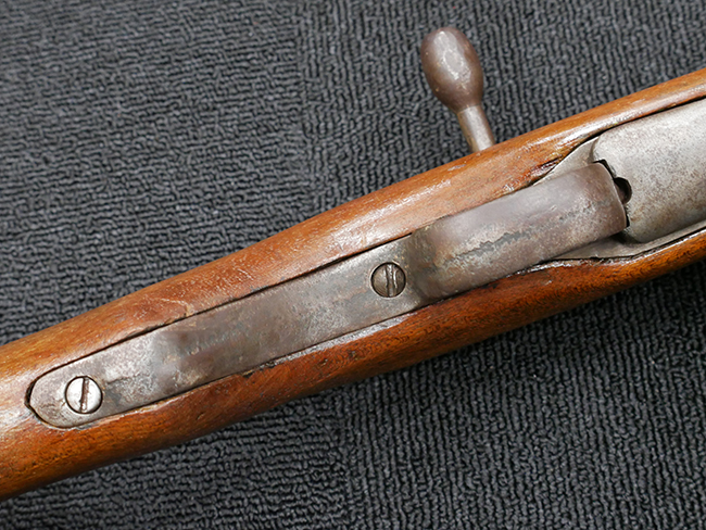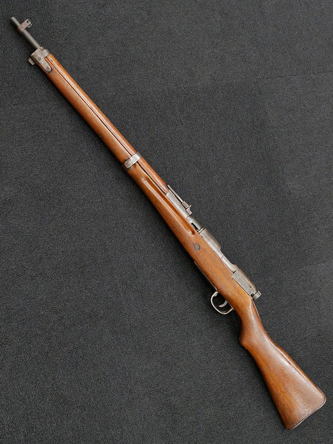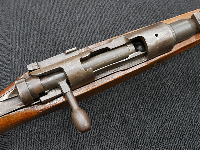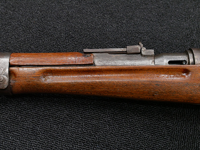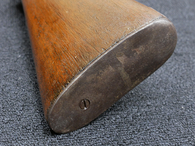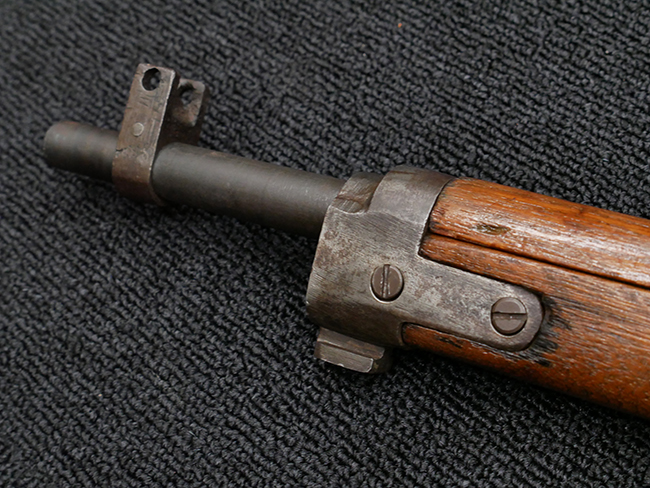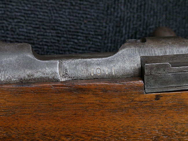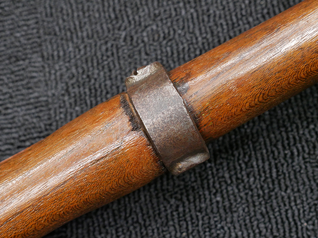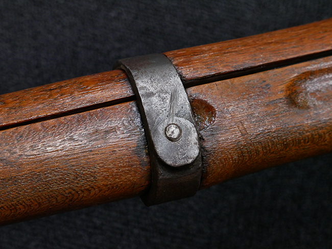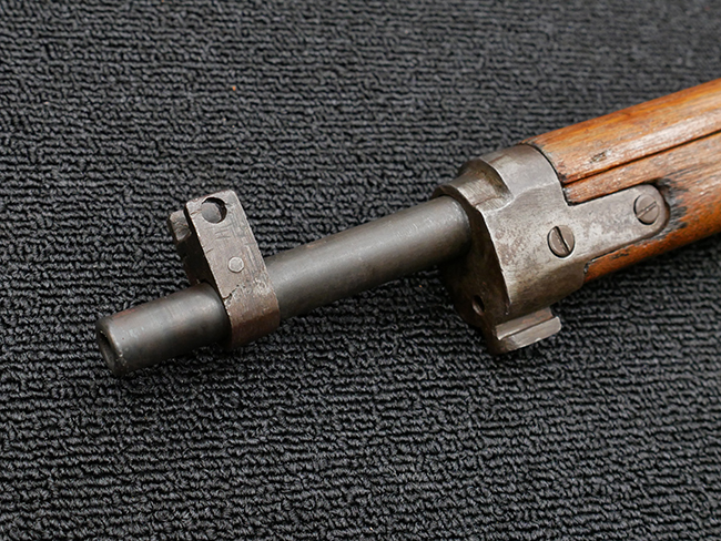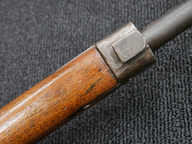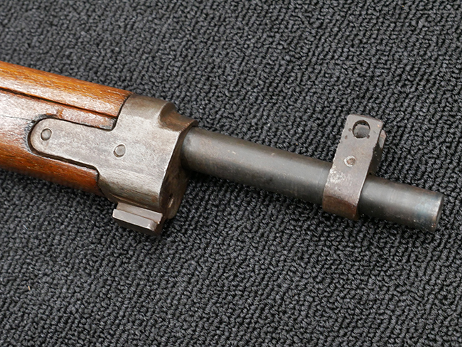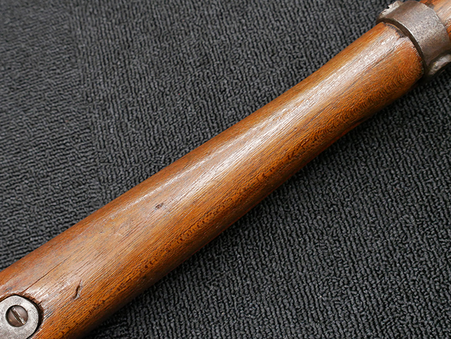 本品は機関部、用心鉄、照尺座などに可鍛鋳鉄の部品が多用されており他の旧軍小銃とは、一線を画す品です。 また前後の背負止は無く遊底覆を装着する溝もありません。 金属部については地金が見えていたり小傷小錆や擦れが見受けられますが、目立った欠損等は見受けられず、時代を考えてもしっかりとした状態が保たれています。