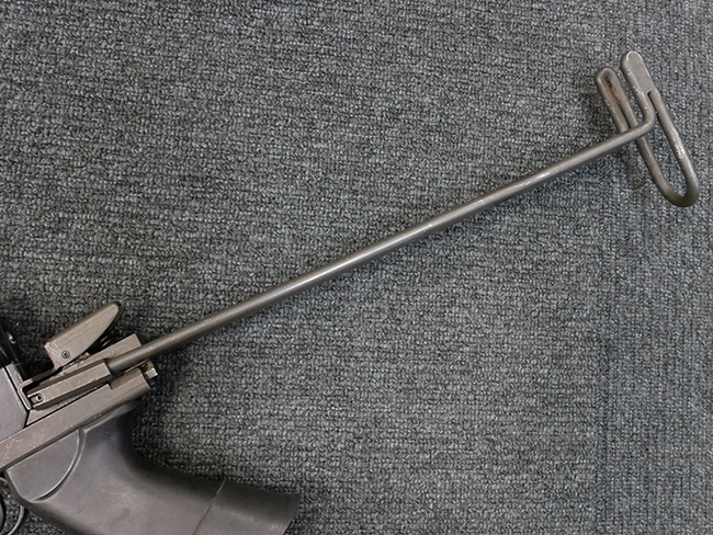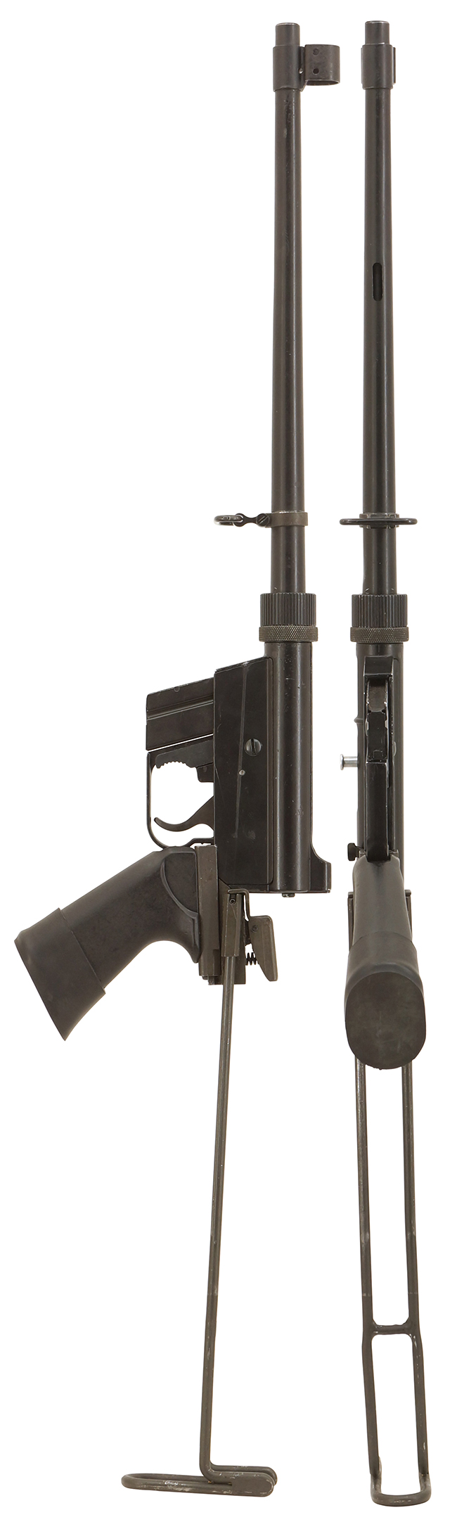 本品はアーマライト社製オリジナルのAR-7 エクスプローラー 自動小銃をベースに、イスラエル軍がパイロット向けのサバイバル・ライフルとして改造を加えたモデルで、FALから流用したピストル・グリップと伸縮式のワイヤー・ストックを備えています。 グリップ底部にはコンパートメントが設けられており、コンパートメントの蓋としてゴム製のカバーが取り付けられています。 また、銃身にはスリング・スイベルが追加されています。