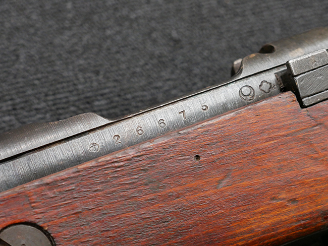 本品は九九式短小銃 末期型 (東京重機製) シリアルNo. 26675で第三国で使用されていない基本的に旧軍が使用したままの状態の品です。 この短小銃を生産した東京重機工業は1938年12月に設立、東京都北多摩郡に所在し戦中は九二式重機関銃や九九式短小銃生産を主に製造しました。