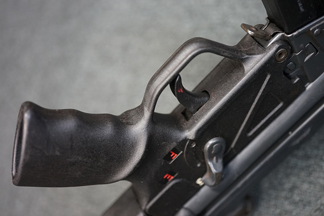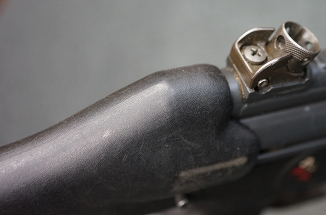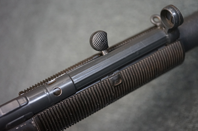 本品は全体に適度な使用感が見受けられ、金属部はやや打ち傷や線傷、擦れ等は見受けられるものの、現状目立った破損や変形等は見受けられません。 特徴的なゴム製のハンドガードについてもやや打ち傷や表面突起の僅かな欠けを除いて、現状目立った経年による劣化等は見受けられません。 樹脂製のトリガー・ハウジングやバット・ストックについても、やや打ち傷や擦れが見受けられるものの、目立った破損等は見られず、比較的良好な状態が保たれています。 各部の取り付けについても現状目立ったがたつきなどは見られません。