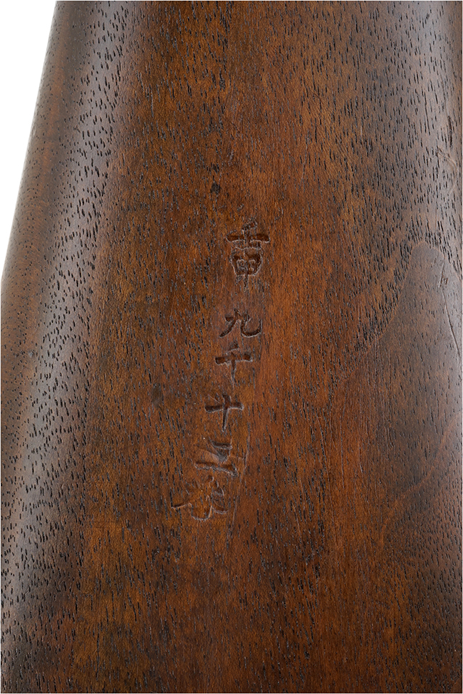 本品のバット・ストック左側面には、「壬申九千十五番 額田縣」の壬申刻印が確認出来ます。