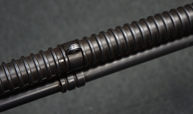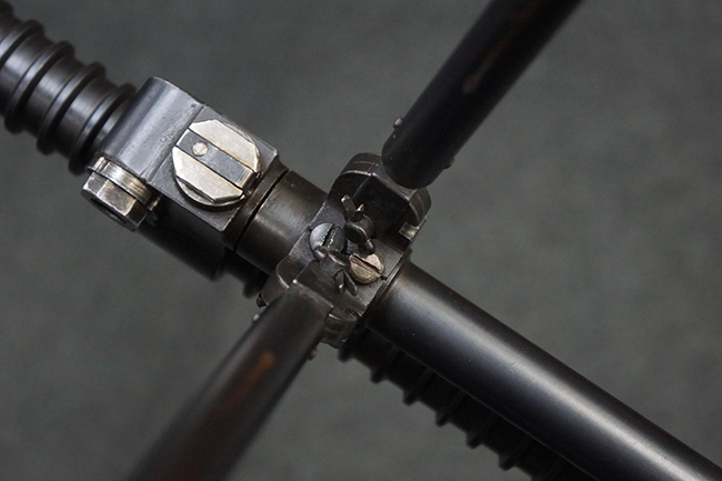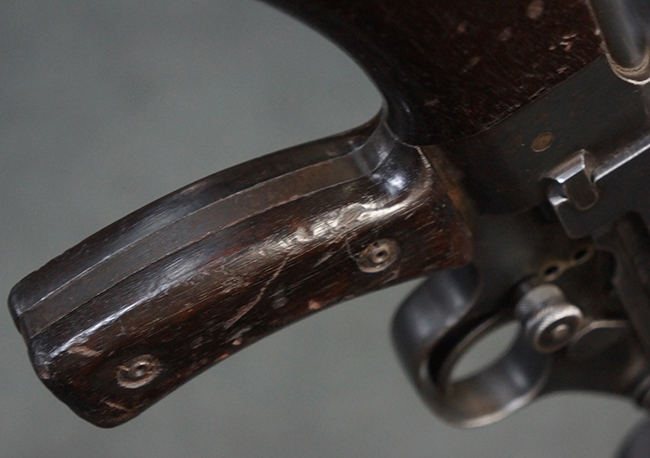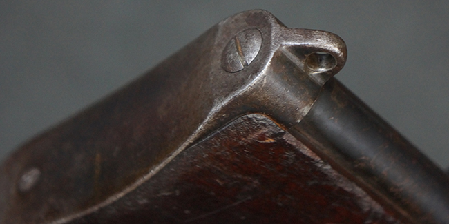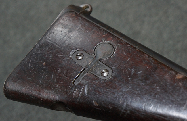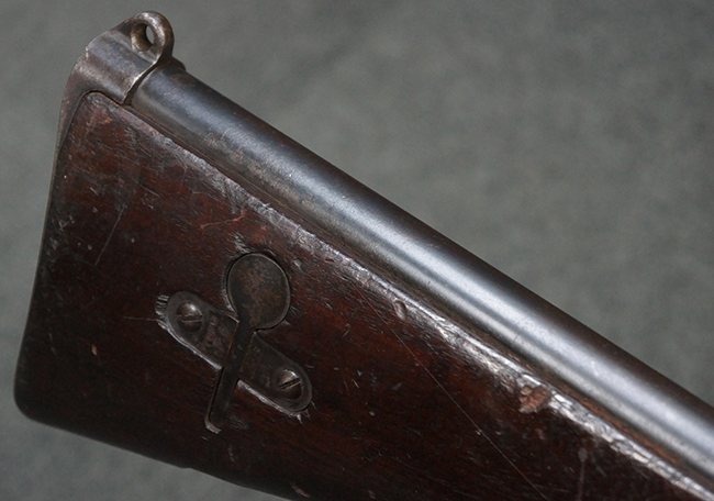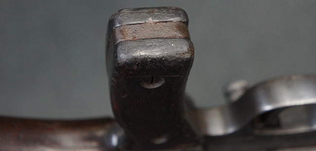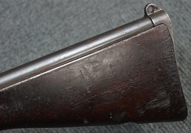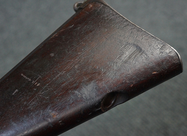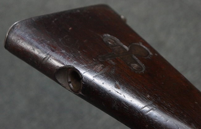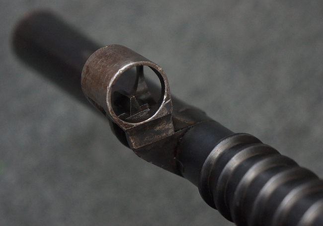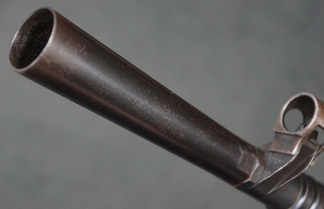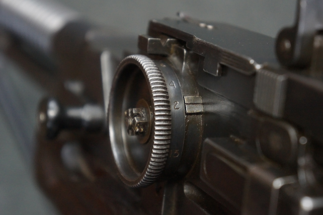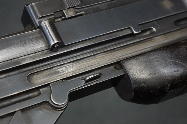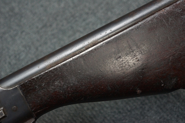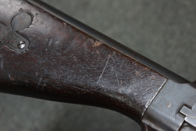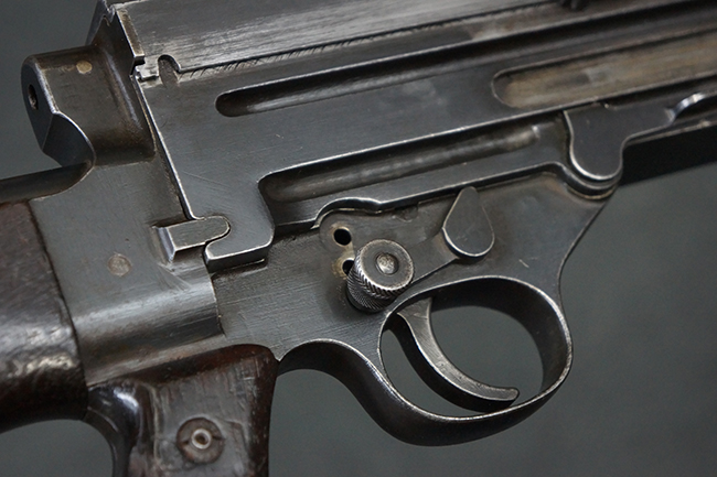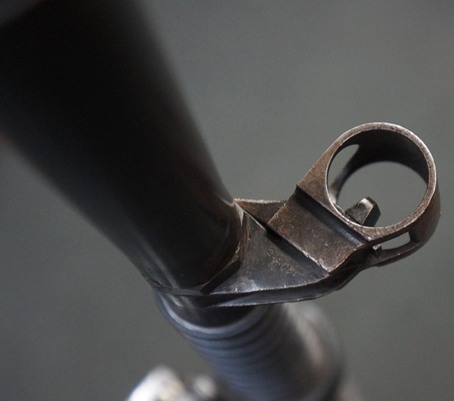 本品の機関部後部上面にはシリアルNo.2429に加えて「VICKERS BERTHIER」の刻印が入っています。 シリアルNo.は機関部、銃身、ハンドガード、マガジン・リリース・レバーでマッチしています。 銃身基部上面には「NITRO PROVED」の刻印及び「303」の口径表示刻印が入っています。 尚、マガジン取付部のダスト・カバーのシリアルNo.は2338、二脚基部は2409となっています。