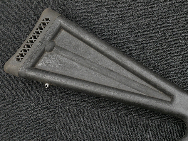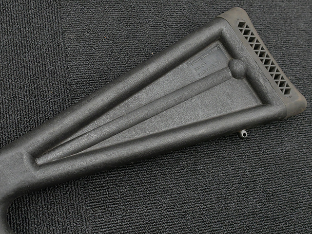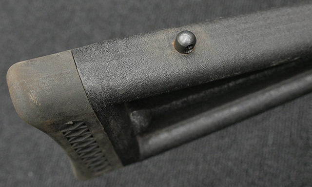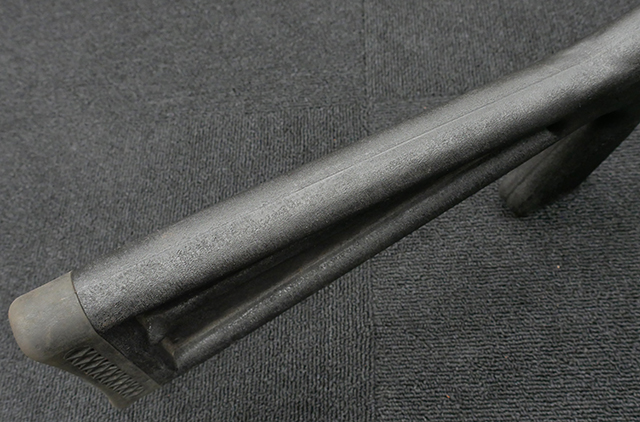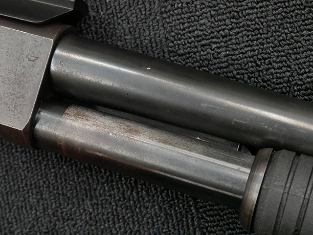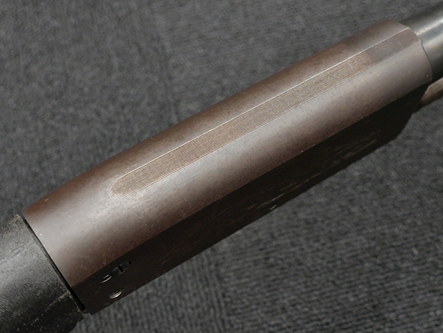 本品の機関部や銃身といった金属部はやや使用感が見受けられ、小傷や経年による褪色、若干の表面錆等が見られますが、大きな破損や欠損等は見受けられず、概ねしっかりとした状態が保たれています。 フォア・エンドやバット・ストック、バット・プレートといった樹脂部については、若干の打ち傷や擦れを除いて、現状大きな欠損等は見られず、比較的良好な状態が保たれています。 尚、セーフティ・ボタンは加工の都合上、やや外れ易くなっています。