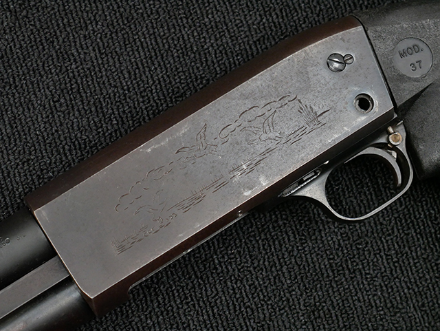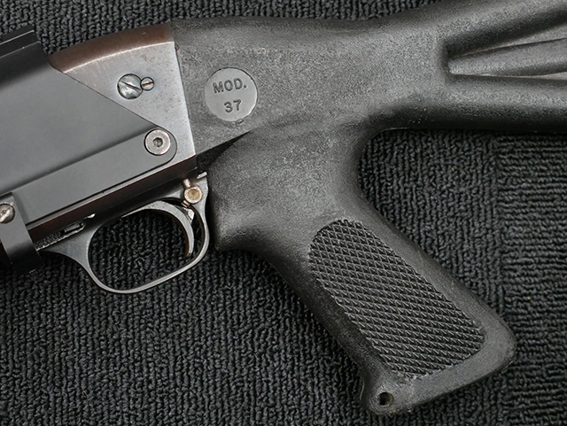 1937年にイサカ・ガン・カンパニー (Ithaca Gun Company) が発売したポンプ・アクション式のショットガンです。 レシーバー下面に装弾口と排莢口を共用するデザインを持つレミントン社製のモデル17ショットガンを参考にし、各部の改良と省コスト化を施し完成されました。 本銃は軽量でありながら信頼性や堅牢性が高かった事から瞬く間に評判となり、それまでダブル・バレル・ショットガンで成功を収めていたイサカ社は、ポンプ・アクション式ショットガンでも大きな成功を収める事に成功しました。 民間でのスポーツ射撃のみならず、警察用や軍用にも大量に採用されました。 米陸海軍では第二次世界大戦中より使用され、特にベトナム戦争時には速射可能な特徴もあり、ジャングルでの歩哨や偵察任務で大いに活躍しました。 イサカはシリアルNo,49,000~62,000を軍用として供給しており、それらの個体には軍用である事を示す「U.S.」の刻印と「P」のプルーフ刻印が入っています。 イサカM37はスクリーンでの活躍も多く、クラシカルな外見ながら、ポンプ・アクション・ショットガンのスタンダードとして、今日でも高い人気を誇っています。 (OS)