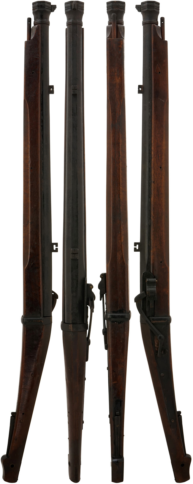 尾栓は現状では固着していますが、ねじ込み部分の基部には大きな錆は出ておらず、外れそうに見えます。 カラクリの作動については火挟を起こした際のロックが掛かり難いので若干調整が必要です。 木製のカルカ (さく杖) が付属致します。