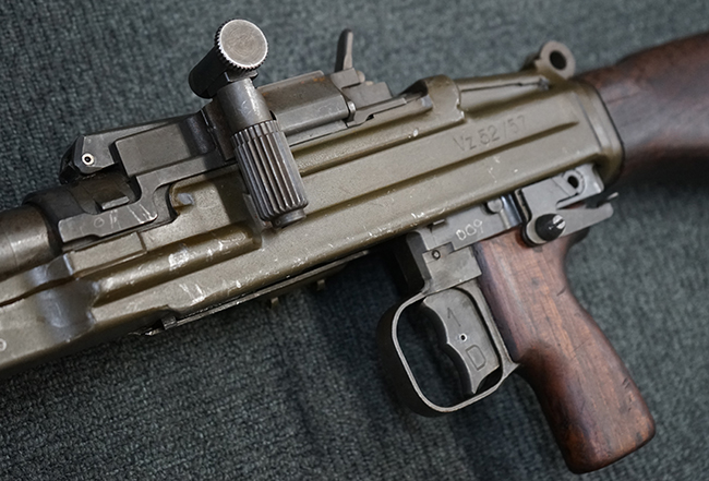 Vz.52 軽機関銃は、ZB26軽機関銃の流れを汲むZB系機関銃の発展型としてヴァーツラフ・ホレク (Vaclav Holek) により開発され、1952年にチェコスロバキア軍で制式となった軽機関銃で、開発時にはZB 501と呼称されていました。 Vz.52 軽機関銃はマガジンとベルトのどちらからでも給弾できる機能を備えているのが特徴で、これは現在ではFN MINIMIなどの分隊支援火器においてスタンダードな機能として取り入れられていますが、当時としては画期的なアイデアでした。 また、独立したコッキング・ハンドルを備えず、グリップを前後させてコッキングをするチェコスロバキア独特の機能も備えています。