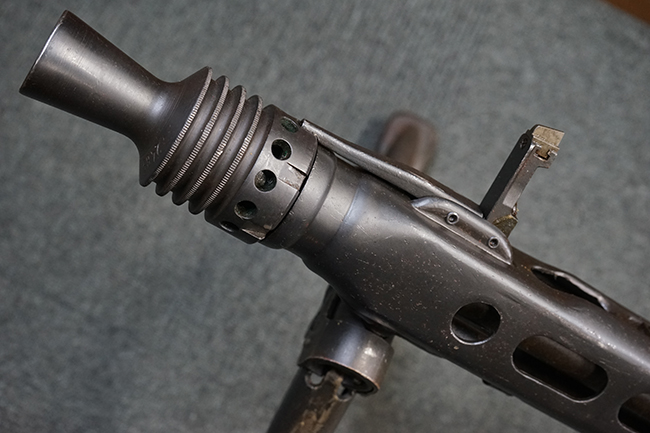 本商品はオリジナルのMG42を基に、戦後にNATO弾を使用する為に改修したMG2で、フィード・カバー、フィード・トレイ、銃身、リア・サイトが交換されています。 また、ニ脚とストックはMG1/3用ですが、シルエットはMG42を踏襲しているため一見では違いは分かりにくい印象です。 全体的に、多少の使用感と経年が感じられますが、目立った破損はなく概ね良い状態を保っています。 多少の小傷こそ見られ、それに伴う表面錆も若干みられますが、表面処里自体は全体にしっかりと残っています。
