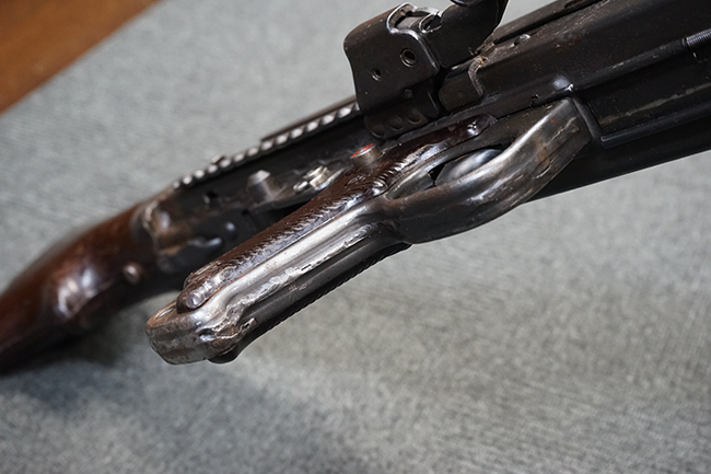 トリガーテンションの有る、ボルトを閉じた状態で固定した旧加工品です。 (YS)