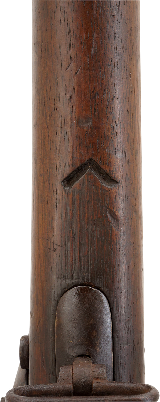 銃身長は1,000mm金属部は全体に状態が良い品です。各部品について、ネジは全て錆によって非常に固く固着しています。スリング・スイベル2箇所は後部は滑らかに回転しますが、前部は錆によって固着しています。 三ヵ所のバンドを留めるバネ式のバンド留めは錆で機能は殆どしておりません。 特に一番前のバンド留めの錆はかなり深い物です。 ハンマーは滑らかに動作しフル・コックでコックします。 木部も程度が良く、打ち傷や小さな割れが全体に散見されるものの、表面の仕上げは全体にしっかりと艶も残っています。 オリジナルの軍用さく杖が付属しています。 銃身は後端まで抜けています。 珍しいモデルで状態も良くオリジナル性の高いお勧め出来る健全な一品です。東京店在庫品。 (MM)