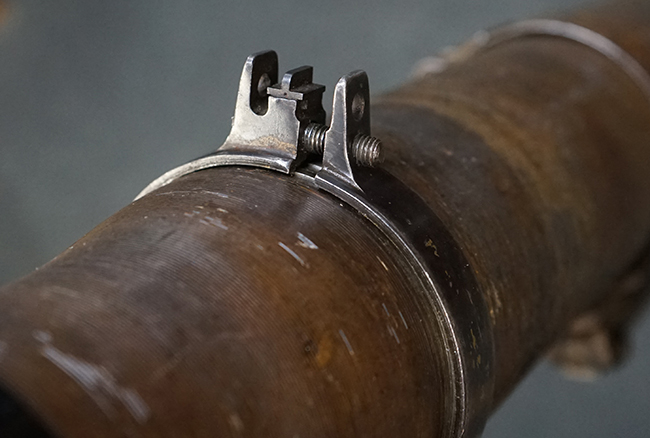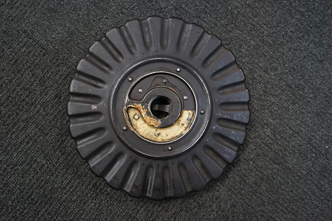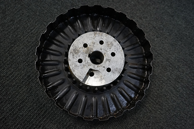 ボルトが開いた状態で固定された新加工品です。 (KK)